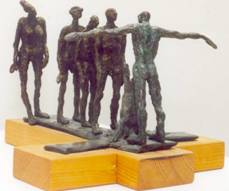 Ildiko Kalapacs is a Hungarian-American artist who has exhibited internationally. Her delicate bronze and mixed media sculptures of figures include doilies, candy dishes, crosses and guns to explore cultural identity and tackle the issues of self-worth while referring to the expectations society requires of women.
