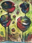 Mixed media artist, working primarily in acrylics, pastel, and collage. Bright, playful paintings using collage elements such as vintage vogue patterns, lace, and early 1900’s children’s books.