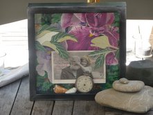 “Washed Ashore: A Vintage Collection” “Barbie Bond has been creating mixed media for most of her life. She has a fine arts degree from Washington State and is currently designing kitchens. This work incorporates vintage objects found in flea markets from Seattle and Barcelona. Her jewelry is a unique combination of watches, skeleton keys and vintage pieces- treasures she has collected for years. The shadow boxes include 1920’s era postcards from Spain reminiscent of travel, intrigue and love left behind.”