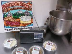 Baked In Seattle’s funky weather-band radio is helping support listener-powered radio station KEXP during July’s West Seattle Art Walk. Enjoy delicious desserts at Baked In Seattle’s home, Blue Willow Luncheonette, 4310 SW Oregon St., Seattle WA 98116, where one dollar of every Baked In Seattle cheesecake and crumblepie sold on Thursday July 8th from 6-9 p.m. will benefit KEXP.