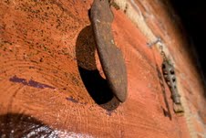 Painting with acrylic becomes necessary because it dries fast – milk paint adds depth, color and texture. I drill holes in the frame to support the objects, haphazardly rip the canvas, and messily sew to seal it back up again. The addition of shiny, pointy objects, strange fabrics, wooden doodads and heavy metals become the frenzied finish.