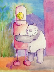 Shoofly Pie Company is excited to feature the art of Jonathan Arras for the June Art Walk. His Spirals In Love series depicts fantastic creatures spiraling in and out of love. Figures traditionally associated with children’s art (magical beings, monsters, anthropomorphized animals) are often burdened with very human and sometimes adult emotions. Common themes are delirious love, loneliness, and giant desserts.