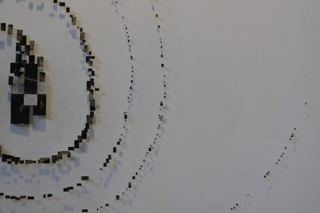 RobRoy’s primary focus for 2011 was constructing a free floating structural paper mass called The Sporozoan Swarm. Built from the remnants of unused intaglio prints and using stainless steel pins to mount it The Swarm is an ever changing, site specific, modular piece. The Swarm’s origins rise from RobRoy’s drive to create. In 2008 RobRoy moved across country to land in Seattle where he became trapped in the financial downward spiral like so many, all of his materials in storage and no place to work he refused to stop making art. When an empty wall in a local shop called to him he followed his passion and began to create with what he had: a portfolio full of prints. Tearing paper until his hands ached he put up the first incarnation of The Sporozoan Swarm. Unemployed at the time he barraged the neighborhood and soon had locations for two other installs. Thru an online assault using flicker and twitter he grew interest in The Swarm. Two years later it has been installed in over 15 locations including one permanent install and two semi-permanent installs. In March of 2011 he traveled to the SXSW conference in Austin, TX to give a presentation revolving around its birth and growth.