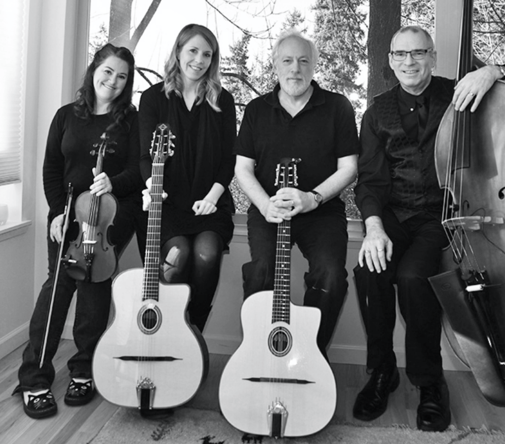 The next performance in the series will be mid-month on Thursday, November 14, during Art Walk and features the jazzy strings quartet of Byron Street Swing. Paul, Melanie, Janna and Kerry loved gathering for jams to play the songs of Django Reinhardt and other Gypsy Jazz masters of today. In 2018, they formed Byron Street Swing to bring these great Jazz Manouche classics to a new audience.