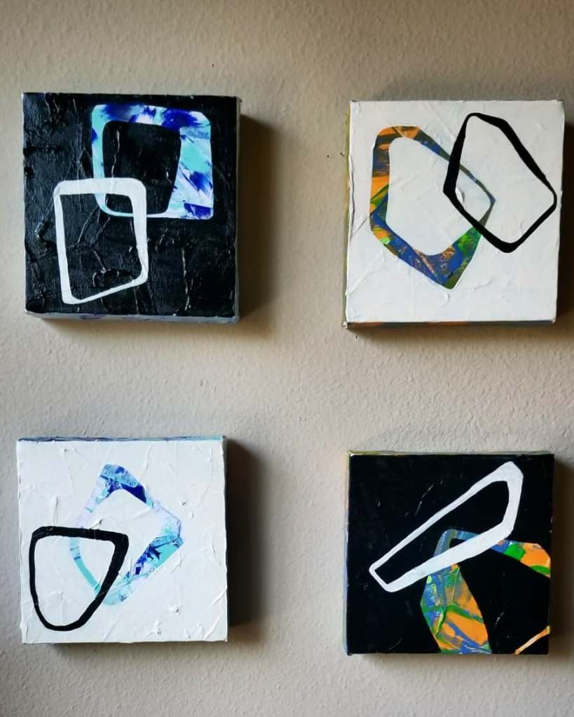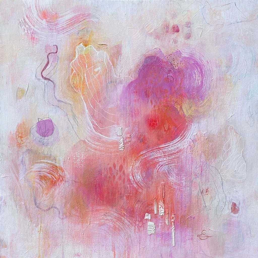 Where structure started as guardrails or creative hand-holding, it is now a launch point. Textured backgrounds of patchwork blocks. Canvases divided into tatami mat inspired panels. Overlaid grids and frameworks. I’m more comfortable with making the unknown known. I’m learning that structure can hold us up, versus hold us in.