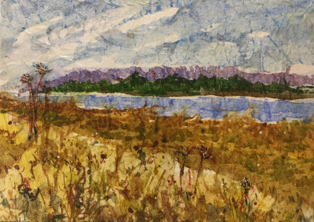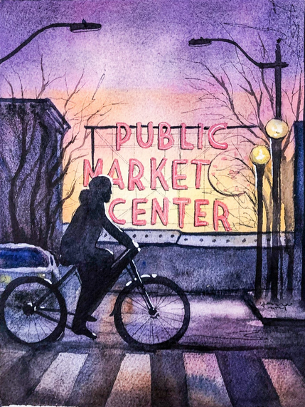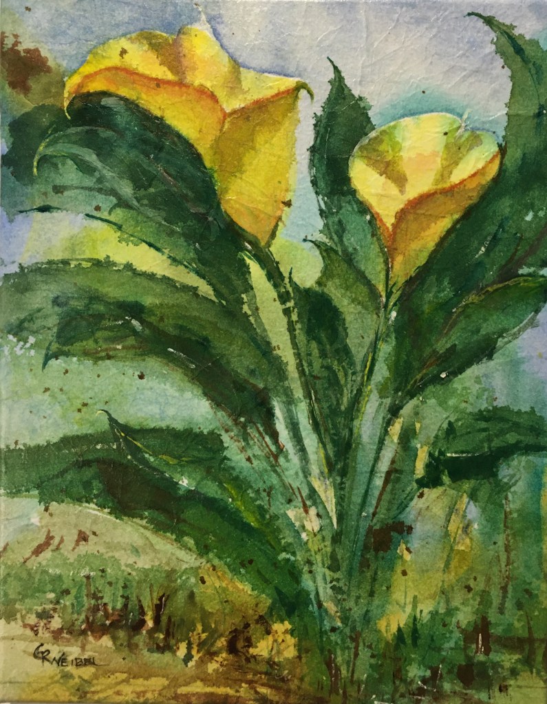 Glenda is a watercolor artist who has lived in West Seattle for over 20 years. She loves the immediacy and fluidity of watercolor, but has recently been exploring ways to free watercolor paintings from being framed behind glass. Several of the pieces in this show are done on archival tissue paper and mounted on a canvas and finished with varnish. This technique maintains the freshness of watercolor, yet sets it free from glass. She also enjoys using traditional watercolor paper and some of those are also in the show.