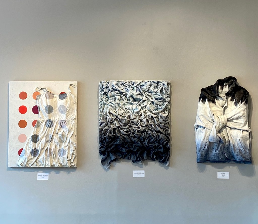 Lynn Davis-Smith is showing her warm and inviting landscapes. Bruce Howard’s DayDream series fills the west wall and his Bottle Cap Series is featured on the north wall. Su Cumming’s concrete and fabric canvases stretch the boundary between sculpture and wall art. Plus many pieces of Ceramic Art from Loren Lukens private collection.