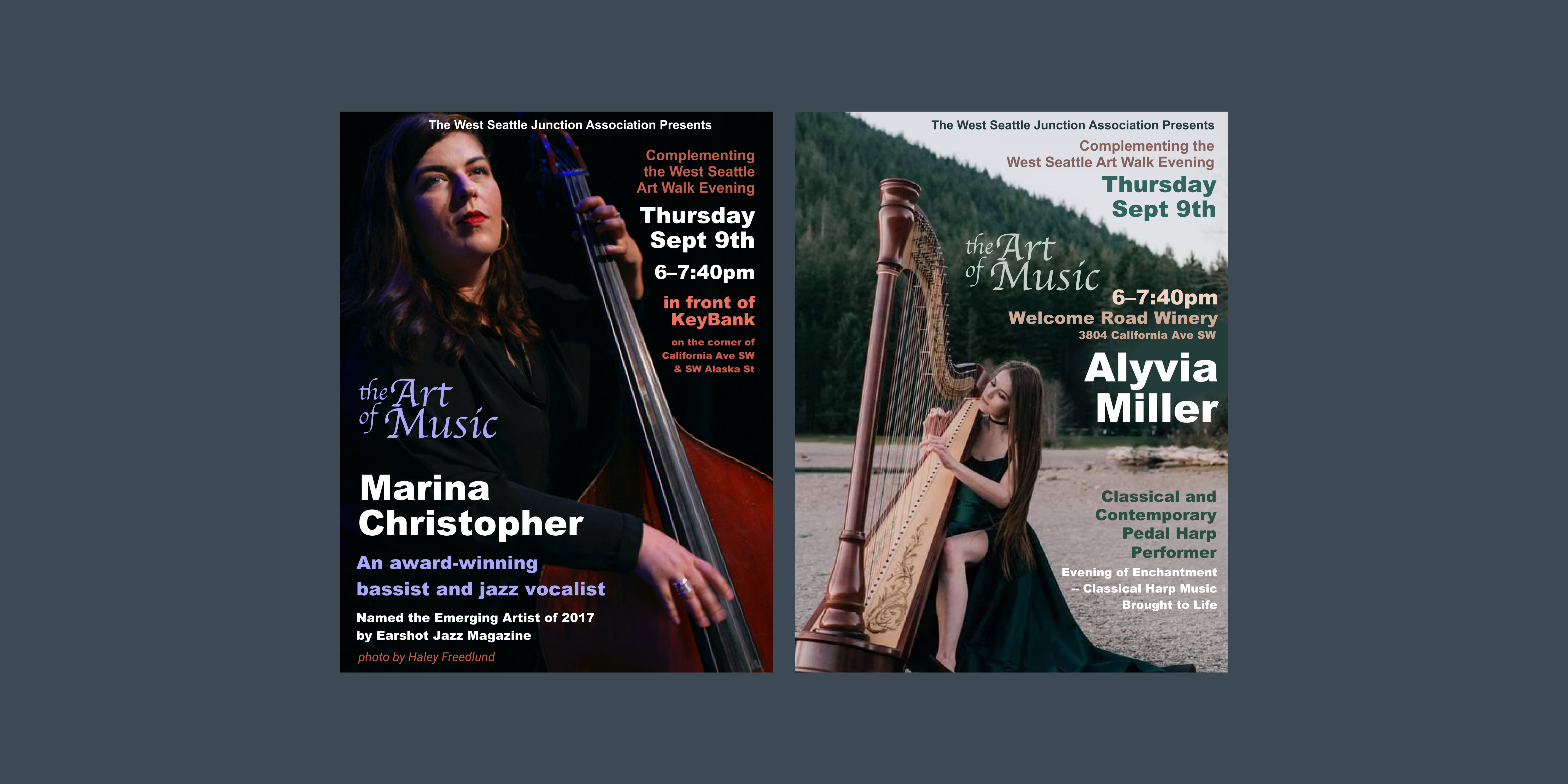 The September 9 West Seattle Art Walk marks the return of the Art of Music – with events both in Admiral and the Alaska Junction!