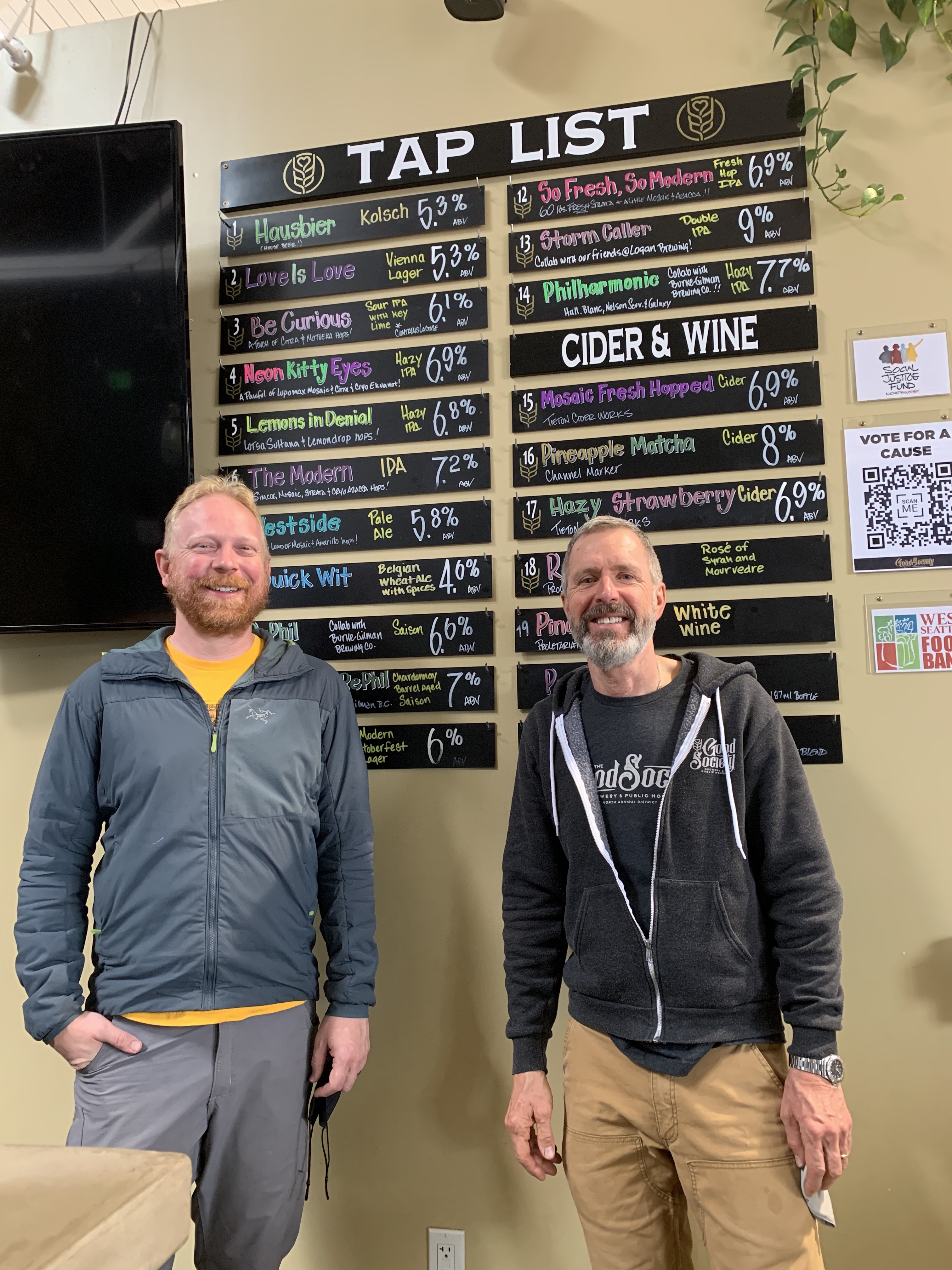 The Good Society opened right as the pandemic hit, in February 2020, but has thrived in the intervening months thanks to its founders’ unique perspectives and talents. Nick’s vision for a brewery was inspired by Sinek’s TED Talk, Start With Why, about how people can get behind a product or concept when they understand the “why” behind it; and the strategy of Impact Investing, investing not just to make money but to effect social or environmental change, introduced to him by his wife. He wanted folks to feel good about the beer they are drinking – and he wanted that beer to be delicious! That’s where Phil came into the recipe, bringing brewing experience and more than 50 awards to his name. Their partnership clearly was made of the right stuff: they were recognized at the 2020 Great American Beer Festival as “The Small Brewpub and Small Brewpub Brewer of the Year”, one of the industry’s highest honors, after only eight months of operation. Nick and Phil love the brewing process, bringing considerable research and intuitive tweaks to what guests see on the tap list, like Nick’s popular Sour IPA, or Phil’s “First to Fall” gold-medal-winning ale.