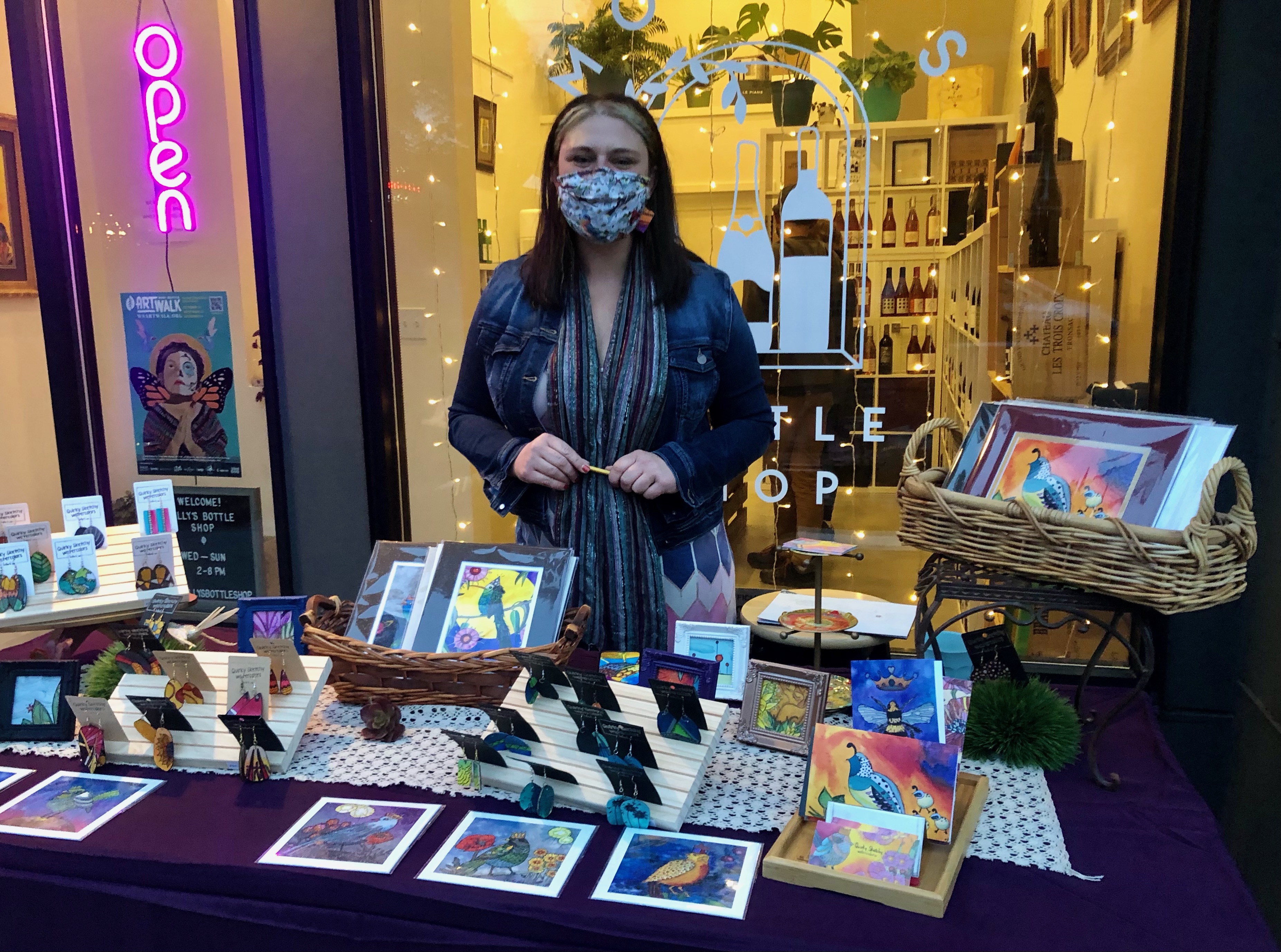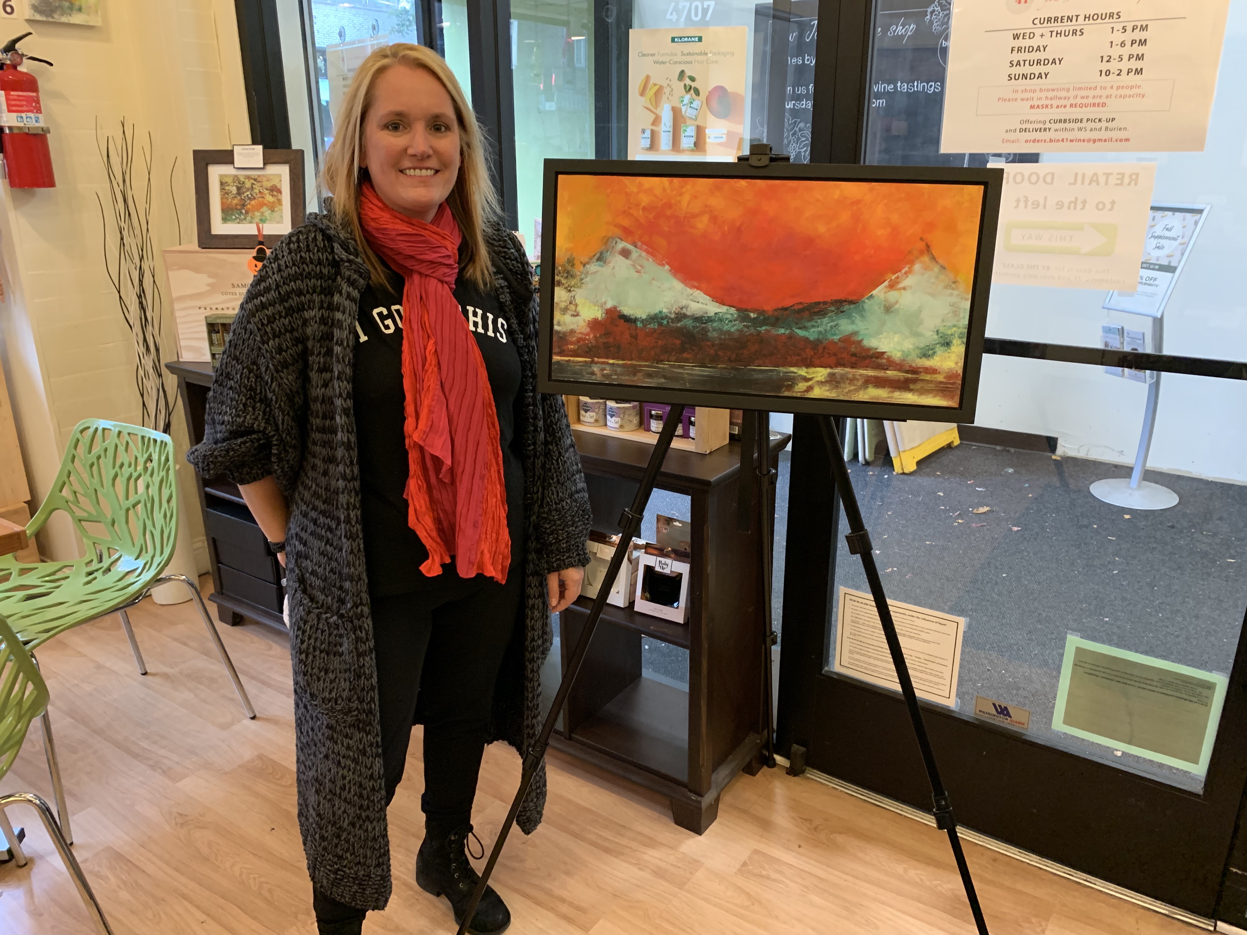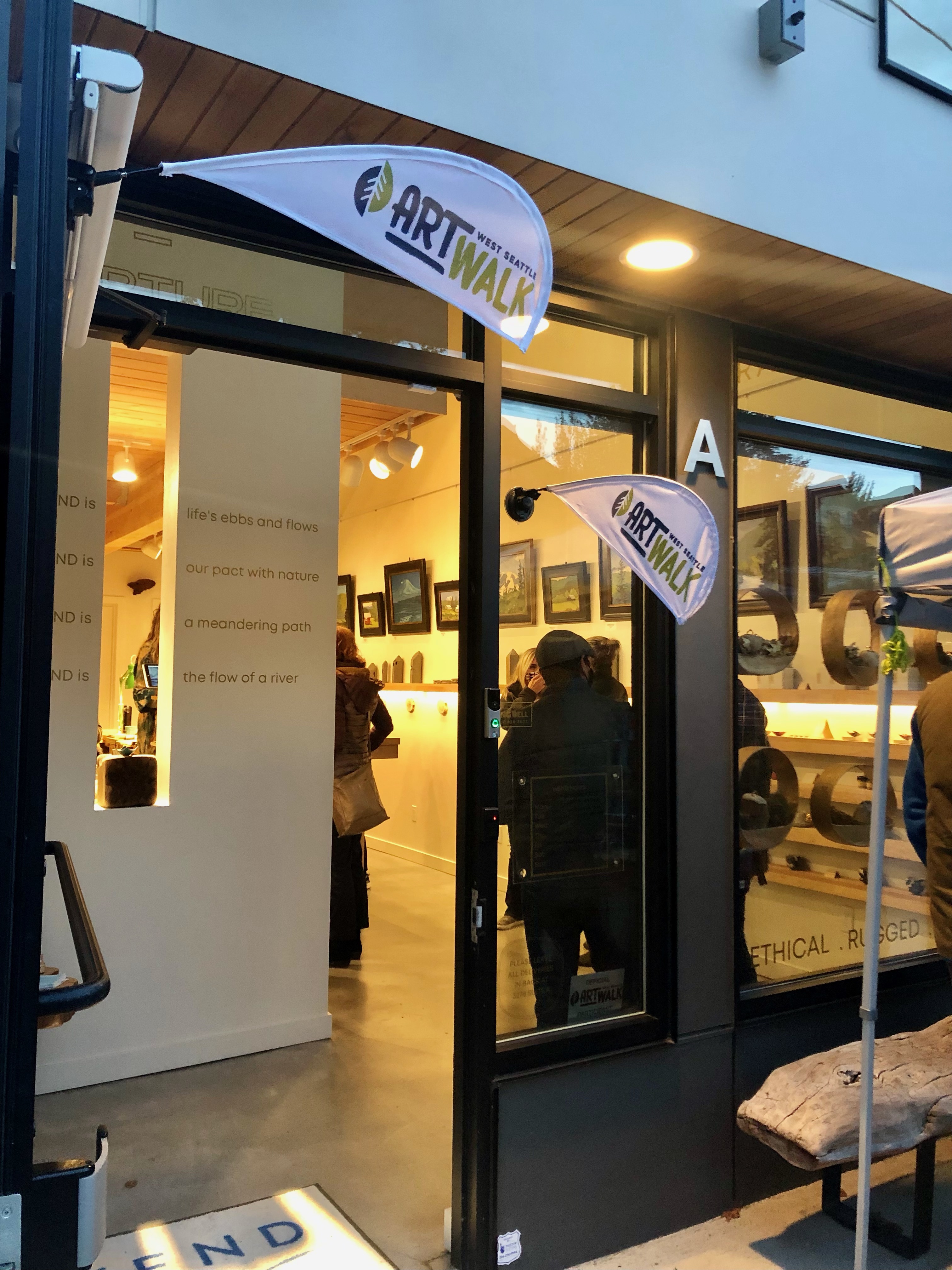 We felt the chill, and heard the rustle of leaves. Strains of Hot Club Jazz and guitar-accompanied song drifted on the autumn breeze. Art Walk has come to mean so much more than a monthly art show. With over 50 businesses hosting receptions or offering food and drink specials, Art Walk casts a wide net of love for a wide variety of artists, from first time exhibitors to the seasoned over-50s set, on all channels of personal expression. Art Lovers mix and mingle, supporting our West Seattle businesses, with a smile and (we’re seeing a lot of) hugs. Pop-ups are popping, receptions are festive, and it feels like we are coming into the holiday season. Thank you all for coming out and making last night a special celebration!