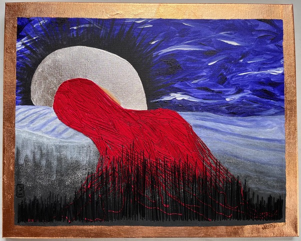 These painting are visual narrative, depicting whimsical women, goddess, queens, calling for healing, harmony and re-connecting with ancient herbal wisdom. Each painting has a layer gold or silver glitter, where in many cultures, gold is a symbol of power, divinity, and immortality. All these painting have been created in the last year and half.