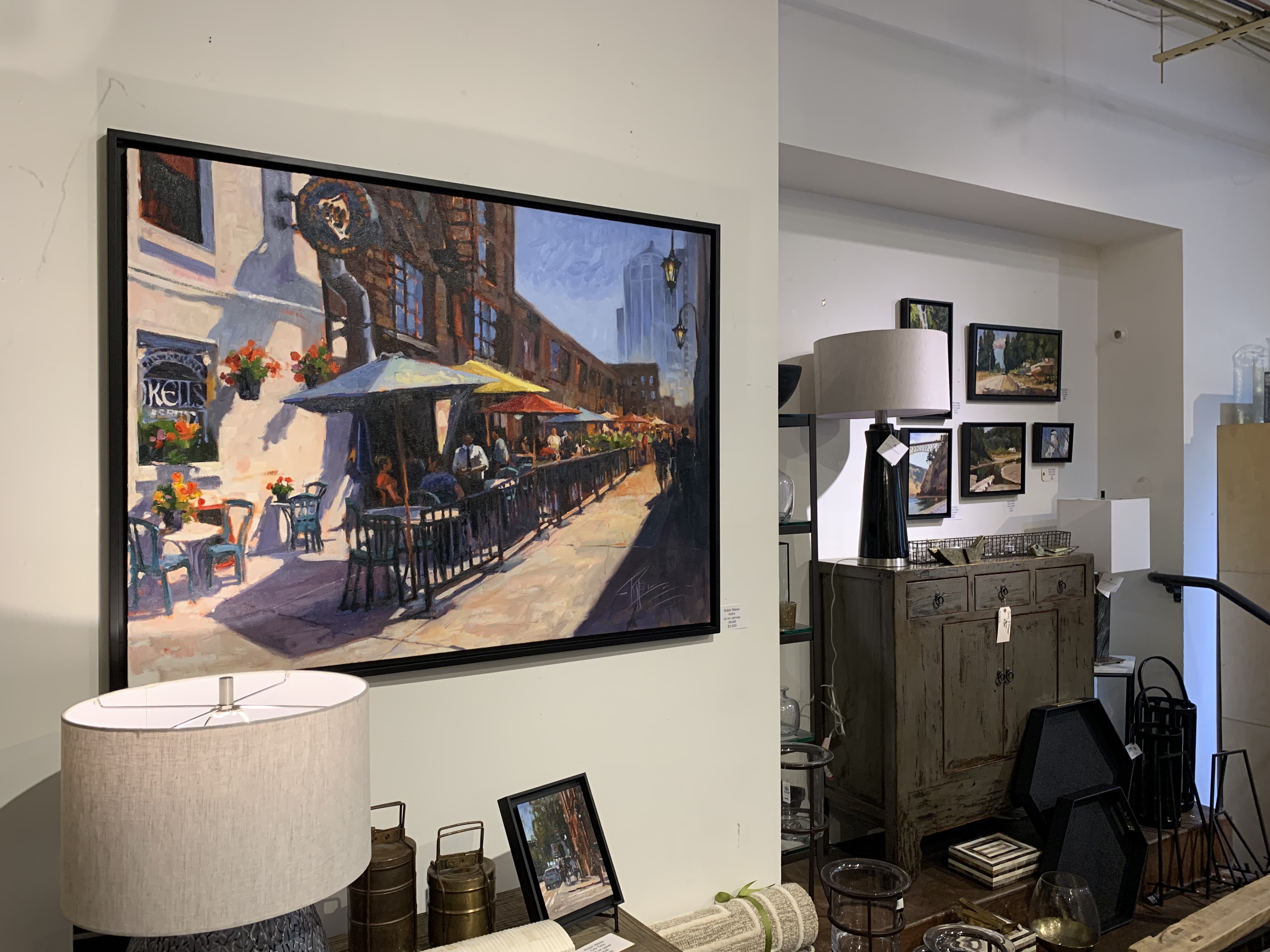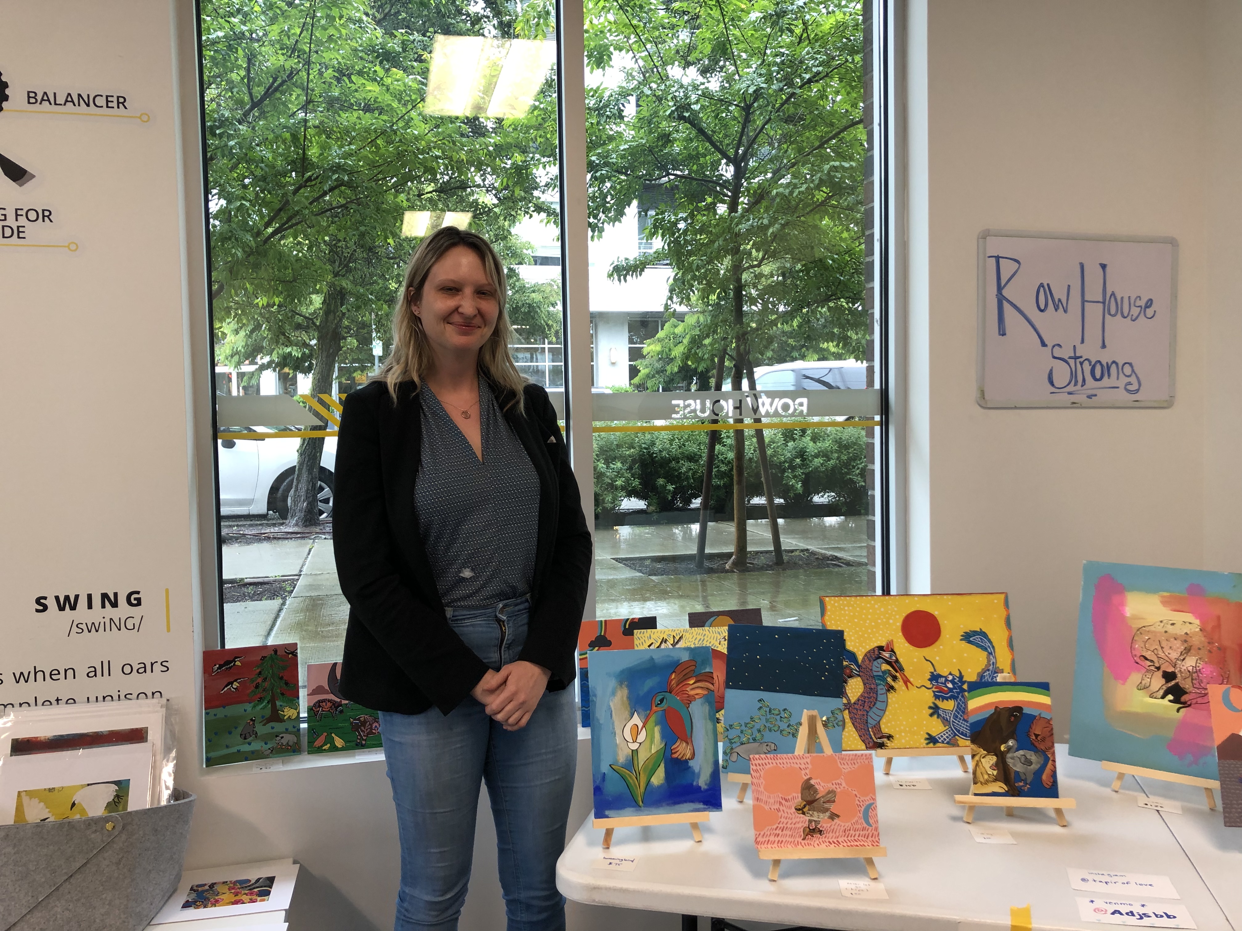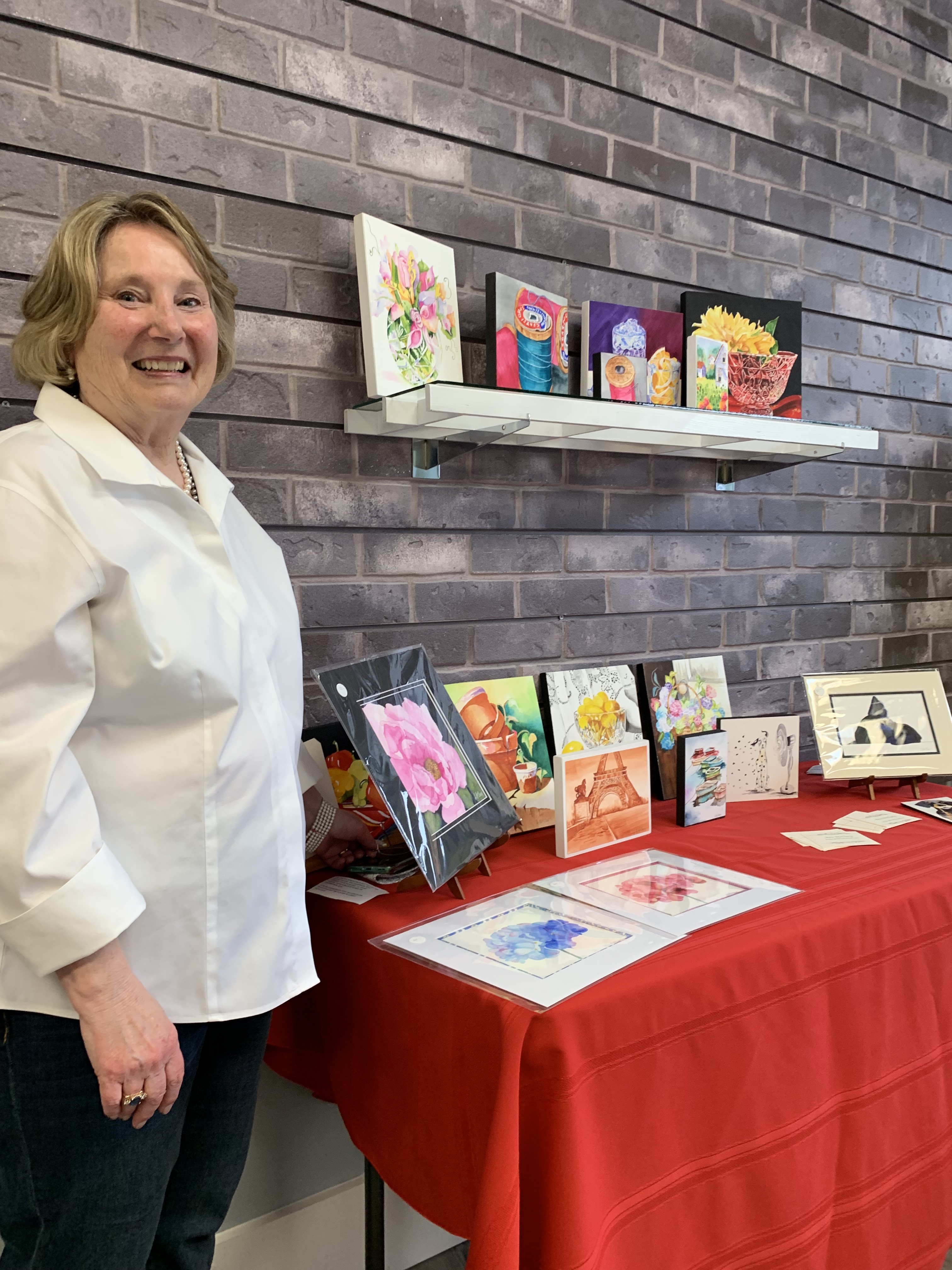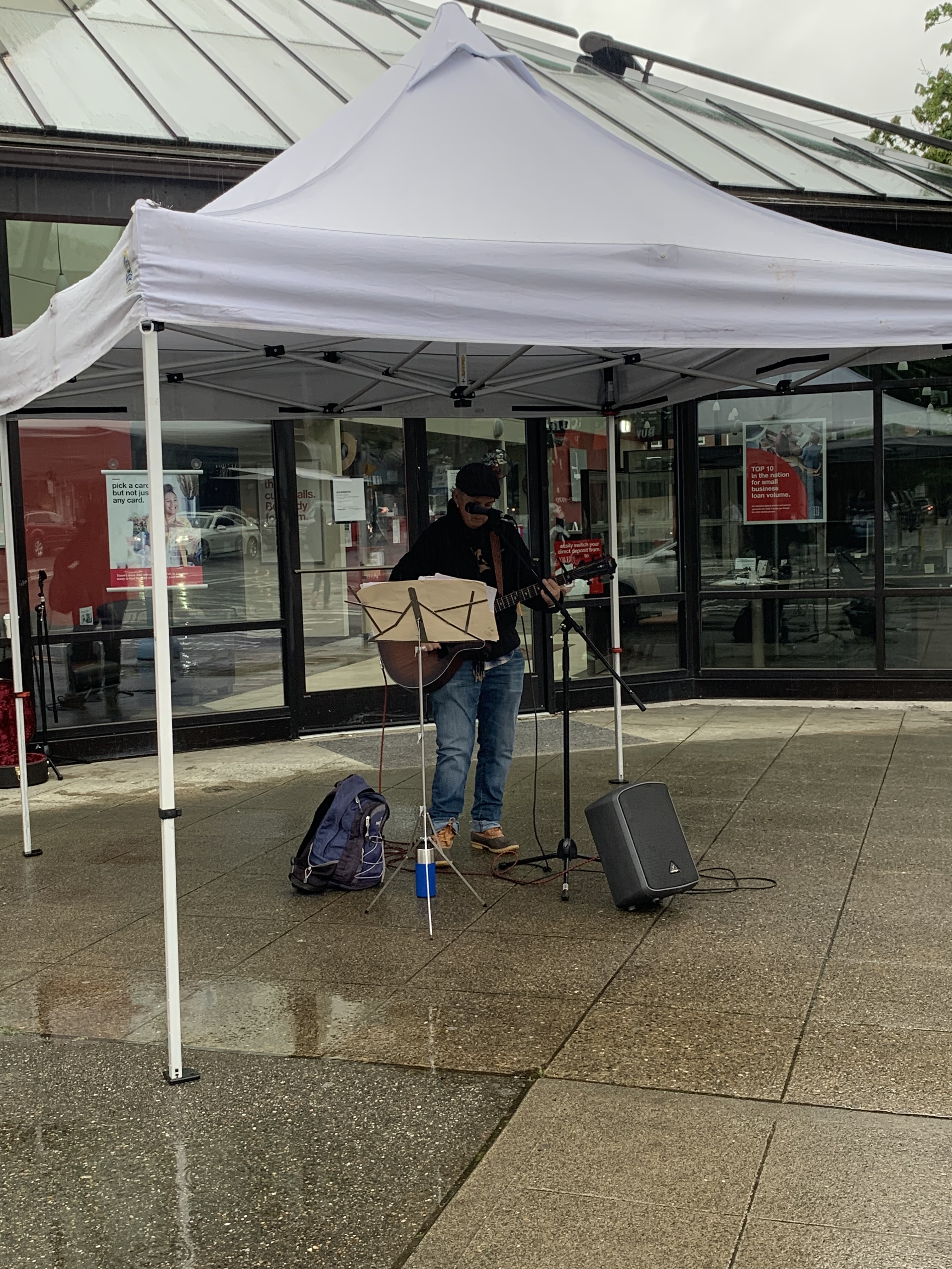 The June Art Walk featured our signature Seattle rain, with the added bonus of an atmospheric river over the region for some added wetness! Spirits were not to be dampened, however, and artists and art lovers were out and about to enjoy the evening. The rain certainly couldn’t dampen Sue Quigley, Art of Music performer stationed at the KeyBank Plaza under a shelter tent! Her soulful vocals cut through the showers.