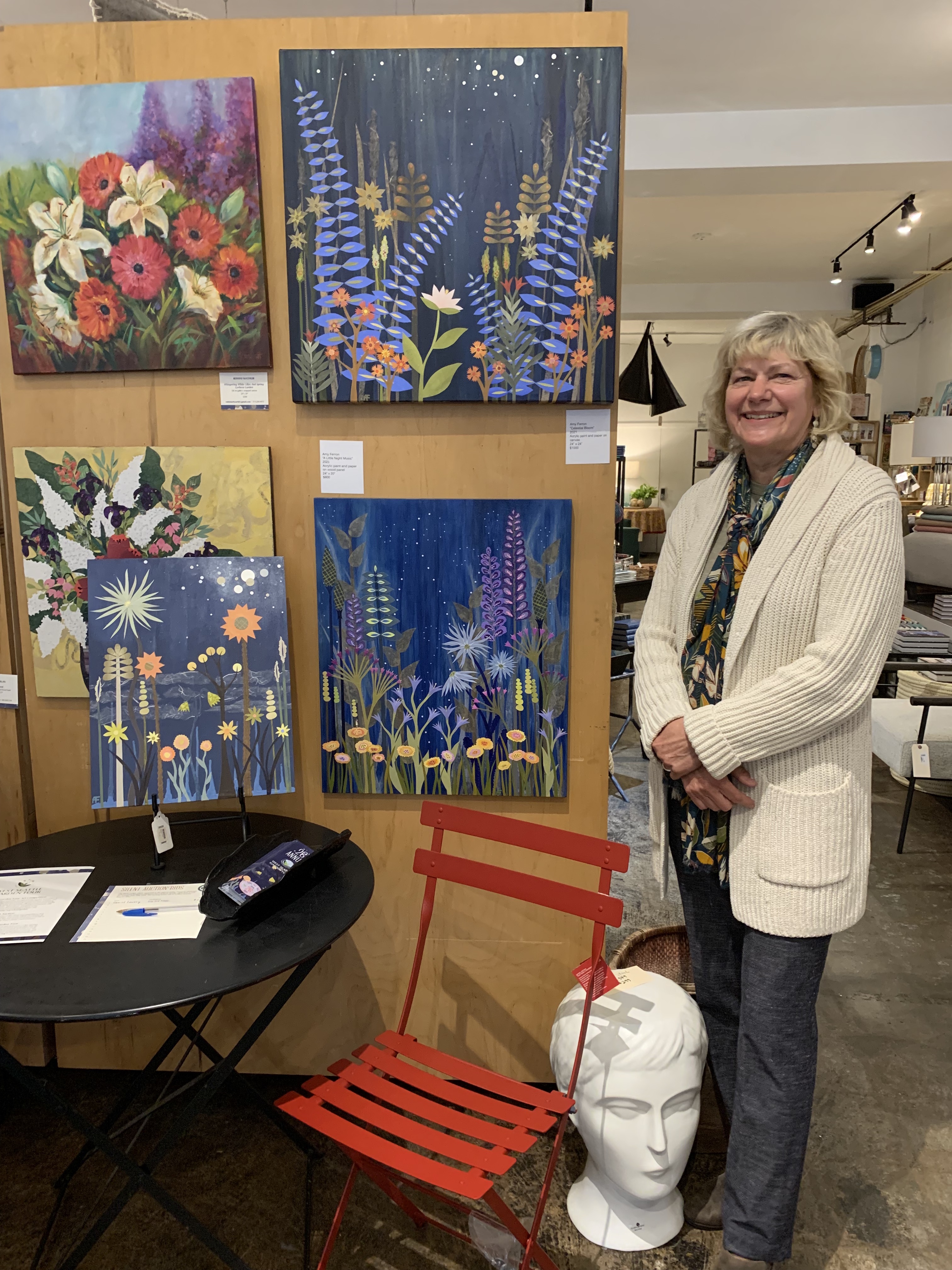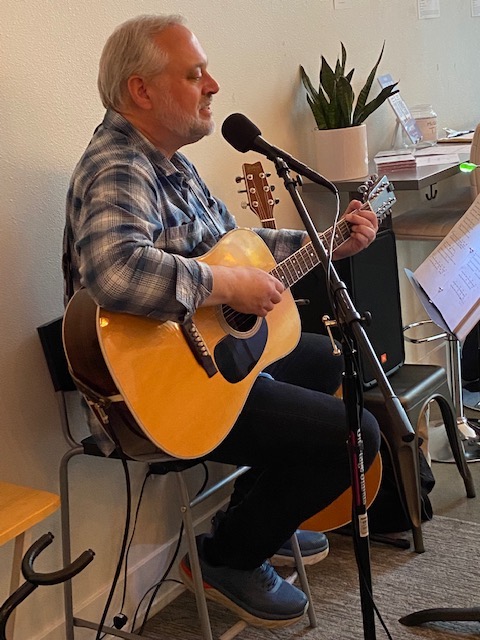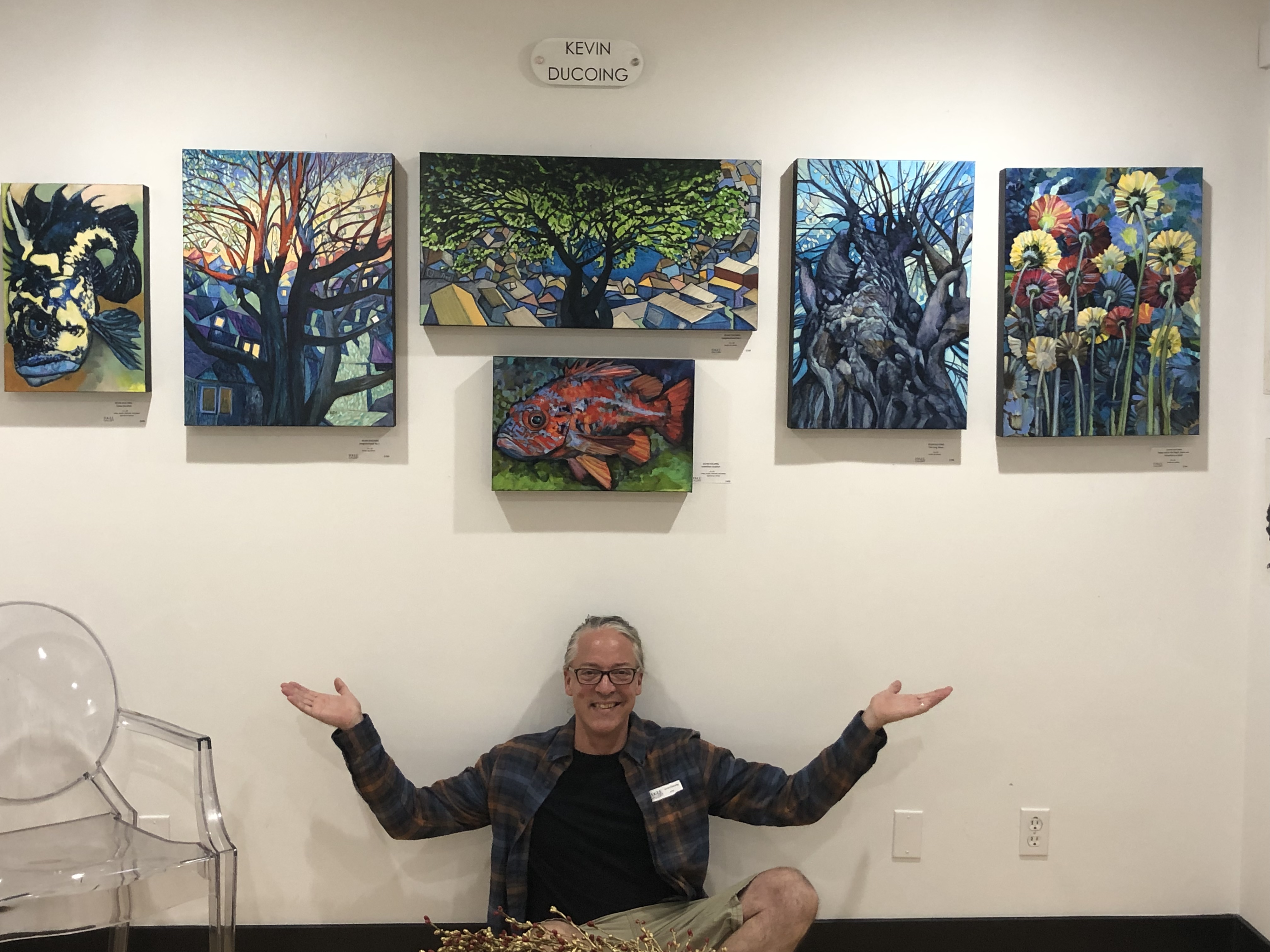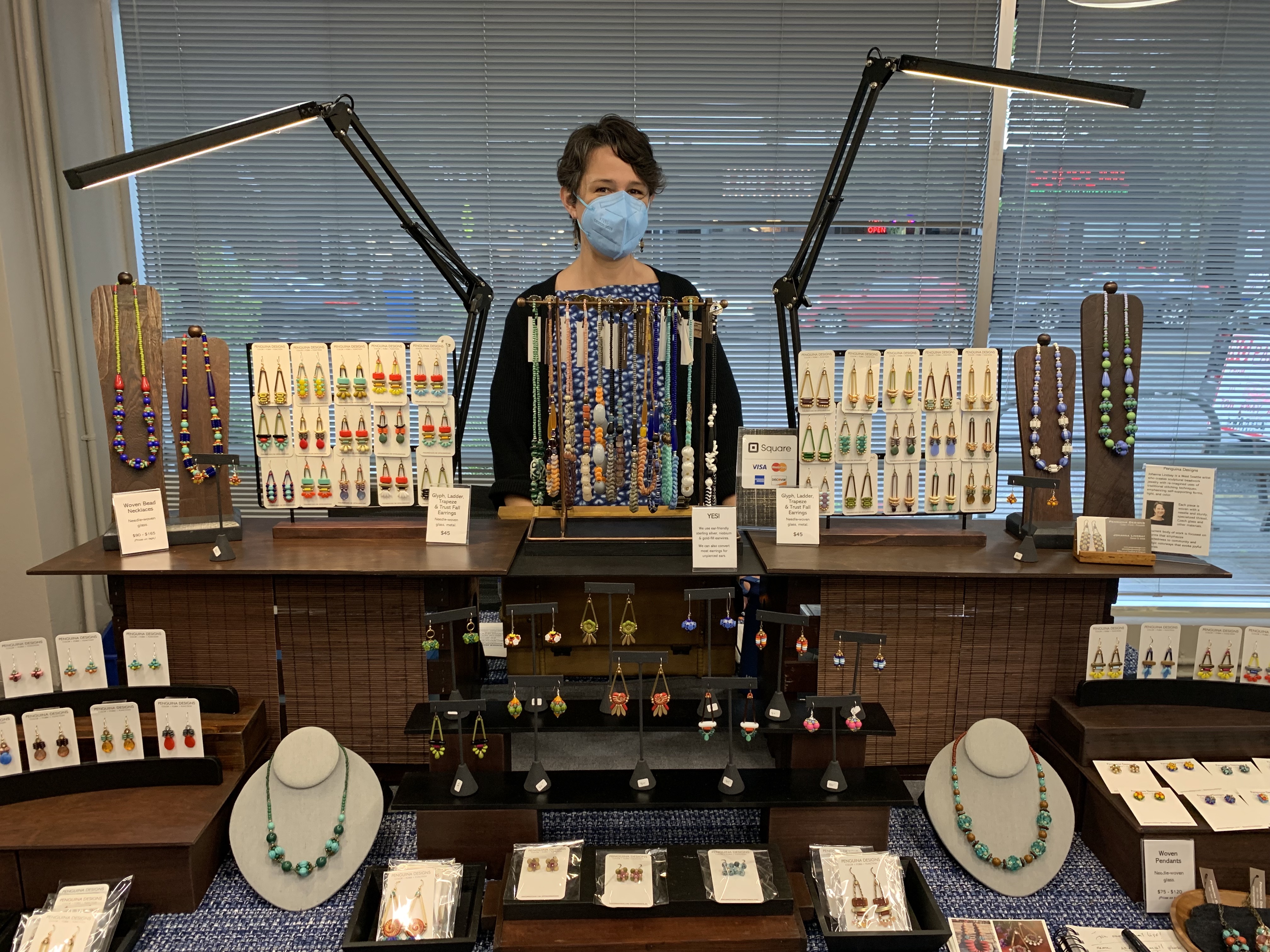 The June Art Walk featured our signature Seattle rain, with the added bonus of an atmospheric river over the region for some added wetness! Spirits were not to be dampened, however, and artists and art lovers were out and about to enjoy the evening. The rain certainly couldn’t dampen Sue Quigley, Art of Music performer stationed at the KeyBank Plaza under a shelter tent! Her soulful vocals cut through the showers.