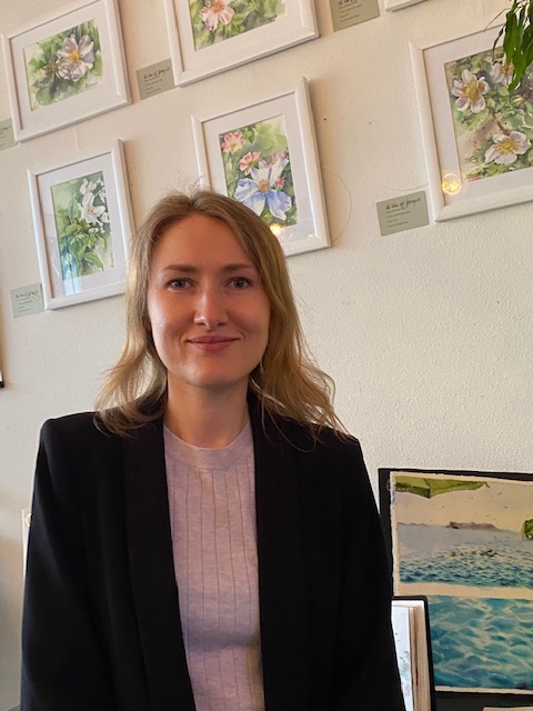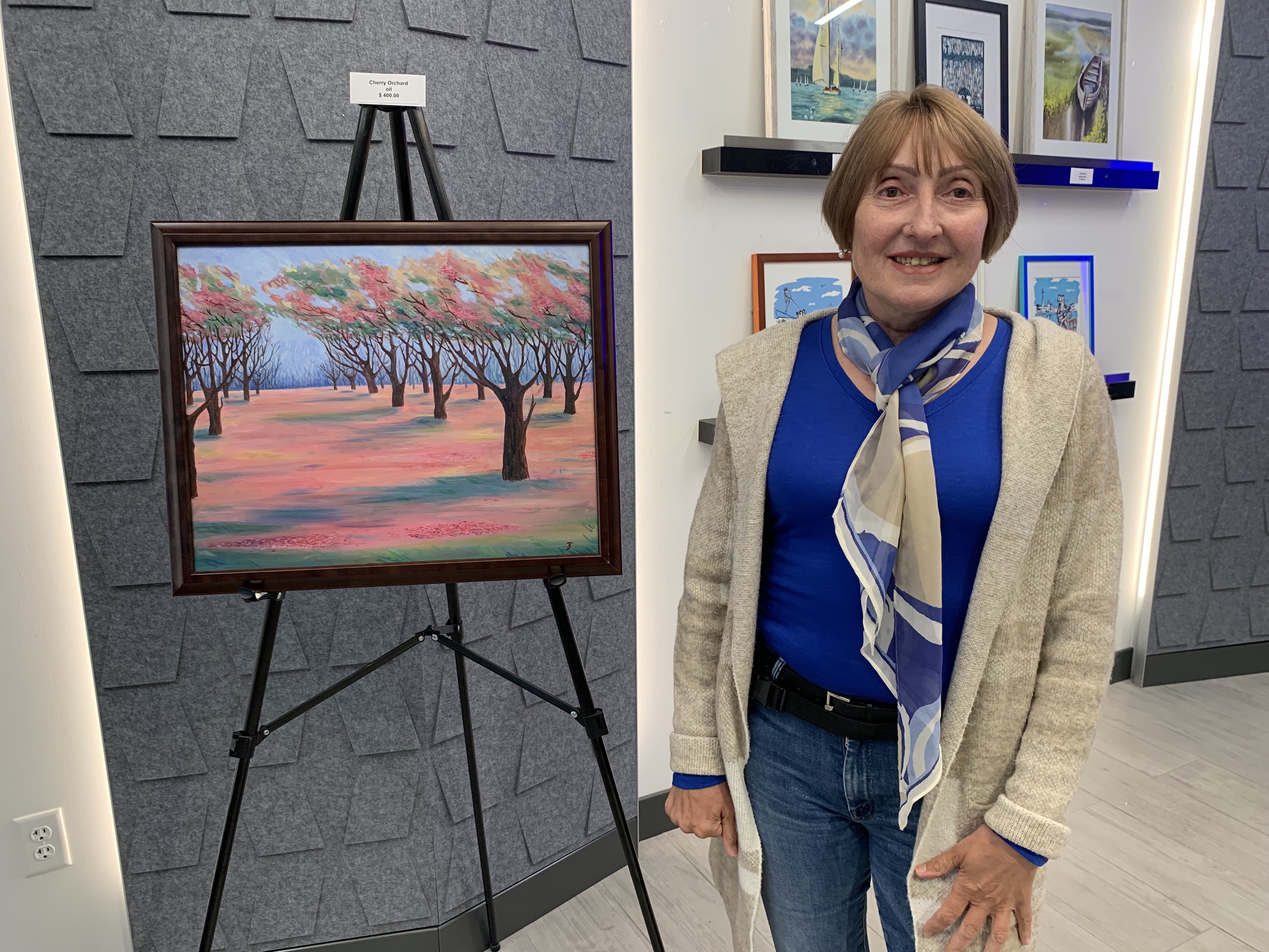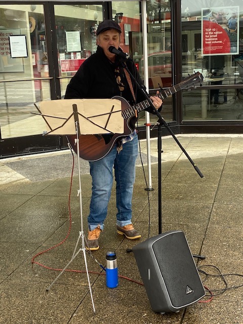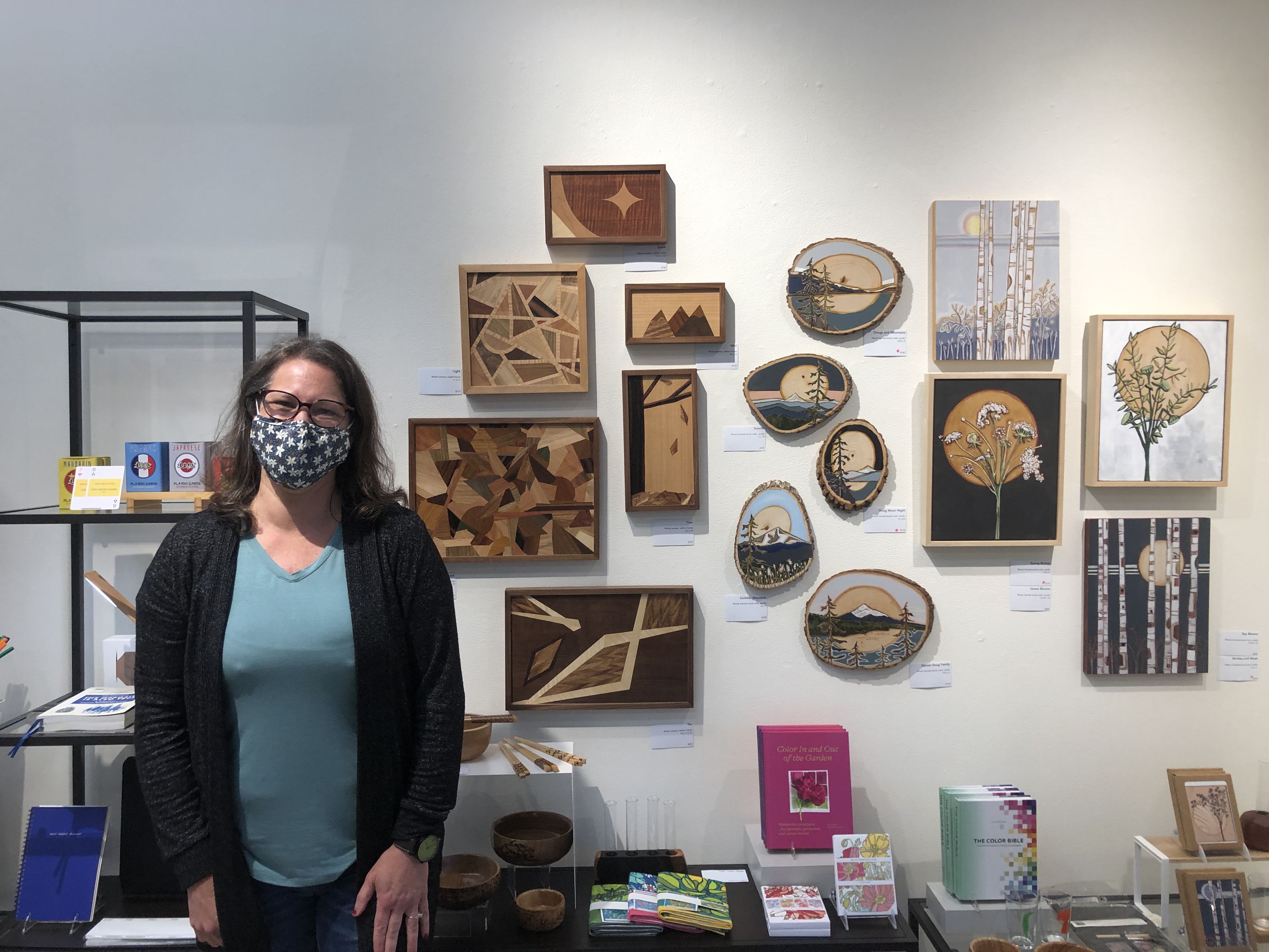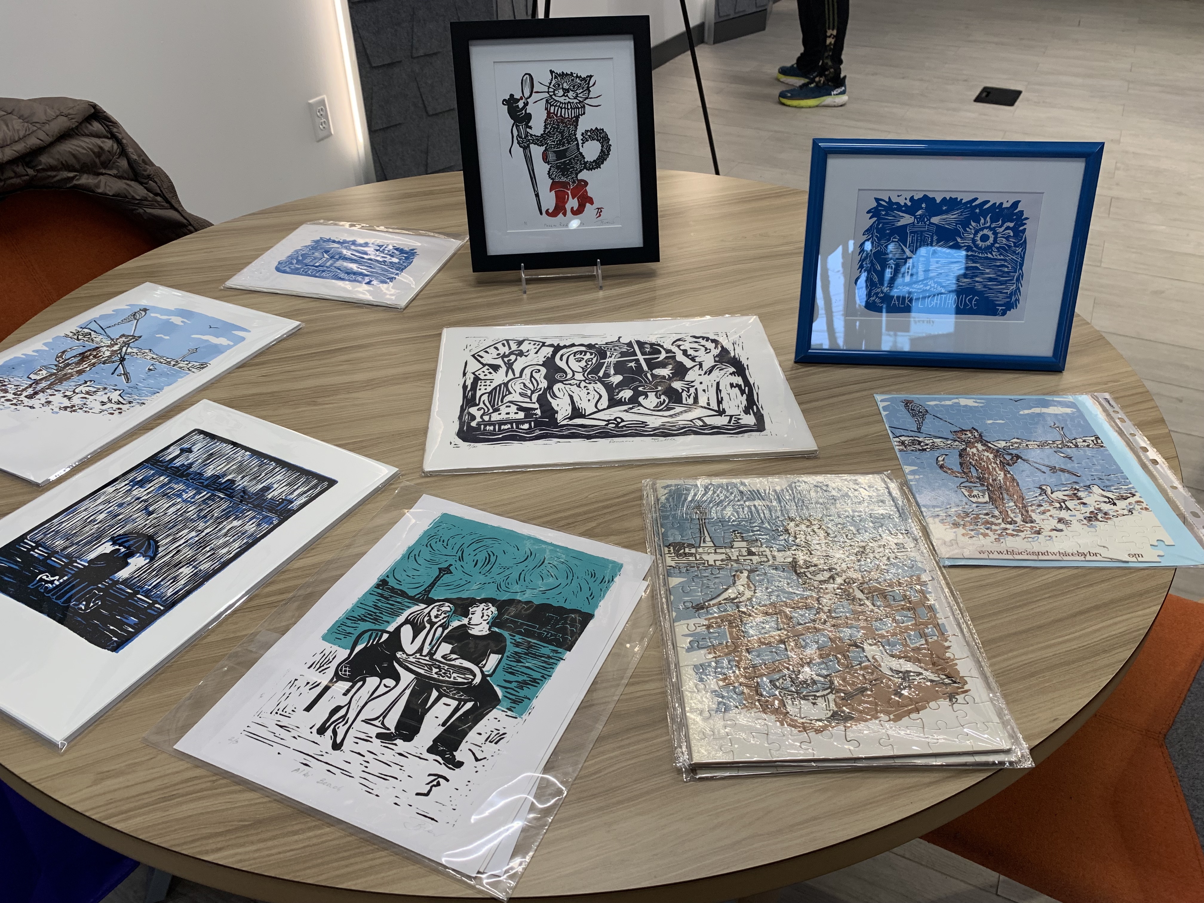The June Art Walk featured our signature Seattle rain, with the added bonus of an atmospheric river over the region for some added wetness! Spirits were not to be dampened, however, and artists and art lovers were out and about to enjoy the evening. The rain certainly couldn’t dampen Sue Quigley, Art of Music performer stationed at the KeyBank Plaza under a shelter tent! Her soulful vocals cut through the showers.