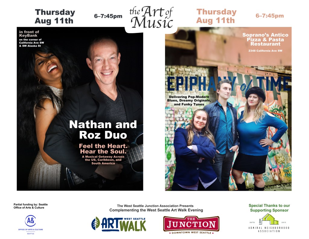 The upcoming August 11 West Seattle Art Walk will feature Art of Music with events both in Admiral and the Alaska Junction!