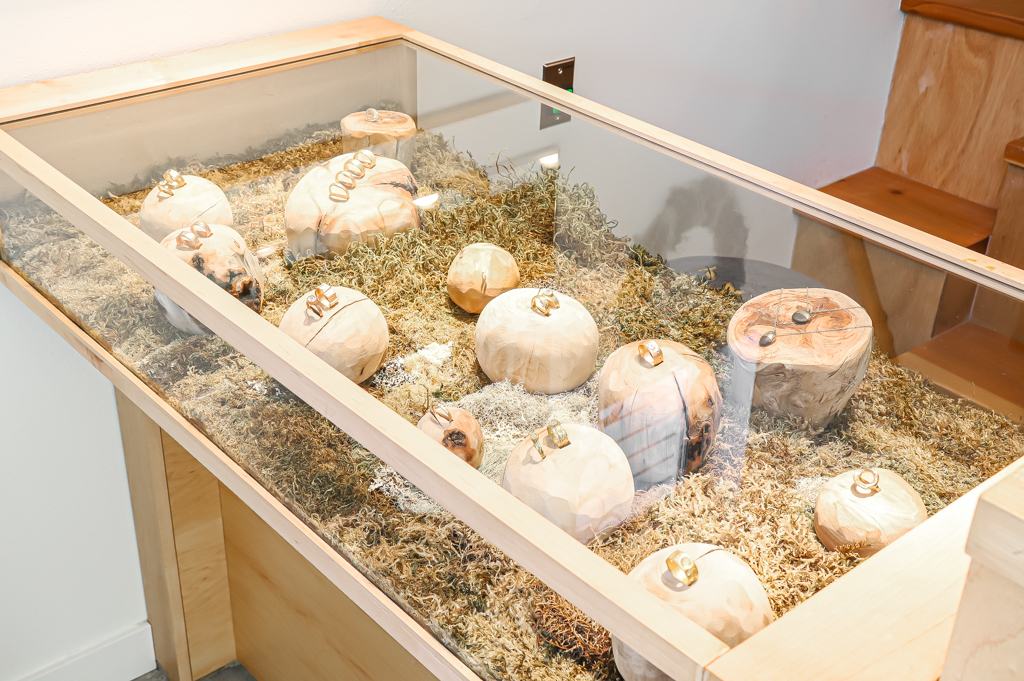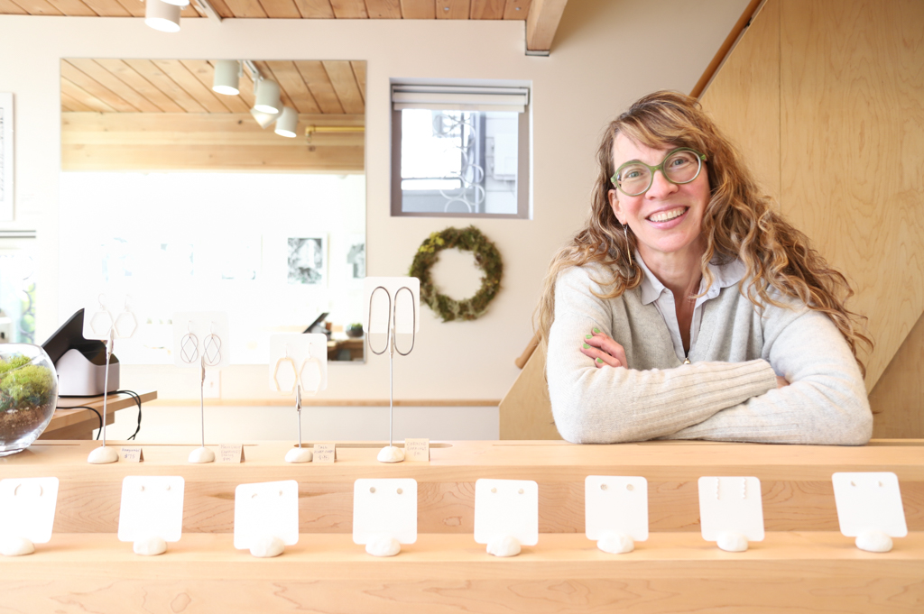 Walking into WEND Jewelry is a lovely respite from the buzz of our busy city streets. The strategically placed lighting, the natural wood, and the moss-filled displays are a breath of fresh air – not unlike the great outdoors in which Wendy Woldenberg finds inspiration for her unique, handmade jewelry. Her walls are filled with creations, like photography and pottery, by other local artists which she gladly highlights during the monthly Second Thursday West Seattle Art Walk.