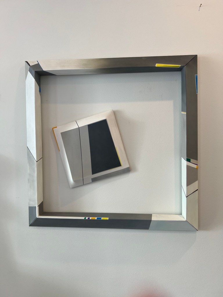 All of my work is relevant to friction and reflection, so for this show I chose pieces that celebrate prosperity, equality, expansion, variety, and interaction. Viewers can play with their image in the mirrors of my art while simultaneously have a feast for their eyes of color relationships and paint stroke textures. My paperworks offer a dance of movement, color, texture and shadow that plays of sunlight so prevalent during our summers. I am grateful to exhibit my work and share its presence. All pieces are available for purchase.