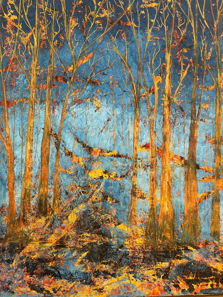 I am a longtime West Seattle resident, former educator, mom of three, traveler, outdoor enthusiast, and an artist who has been finding inspiration in the natural world all of my life. The paintings displayed here are my attempt to honor trees, our source of oxygen, food, shelter, and solace. I use oil + cold wax medium to achieve vibrant dolor, texture, and dimensionality. Cold wax, (unlike encaustic) is a whipped wax medium that is mixed 50-50% with oil paint and applied without heat. In support of the trees, I will be donating 20% of all sales toward carbon credits.