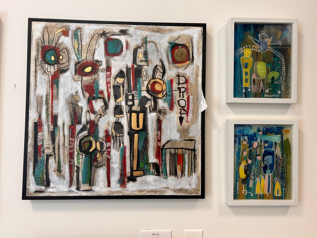 Inspired by the influential artistic paths of Virgil Abloh and Kaws, Ben aims to transcend artistic boundaries and backgrounds showing him that you don’t have to be specific to one way of creating, & you’re not bound by the material you use. At the heart of his art lies a profound desire to evoke emotion in the viewer and embracing the relativity of art. He invites viewers to embrace their unique interpretations. Each piece beckons to a personal connection, be it joy or melancholy, nostalgia or anticipation & through his work, encouraging viewers to immerse themselves in the dynamic interplay of colors, forms, space, textures, and light, provoking a personal and emotional connection. Ben will also be collaborating on a limited release t-shirt & hat with Rush Hour Clothing in honor of their new storefront in the West Seattle Junction. Shirts/hats will also be available all month for purchase.