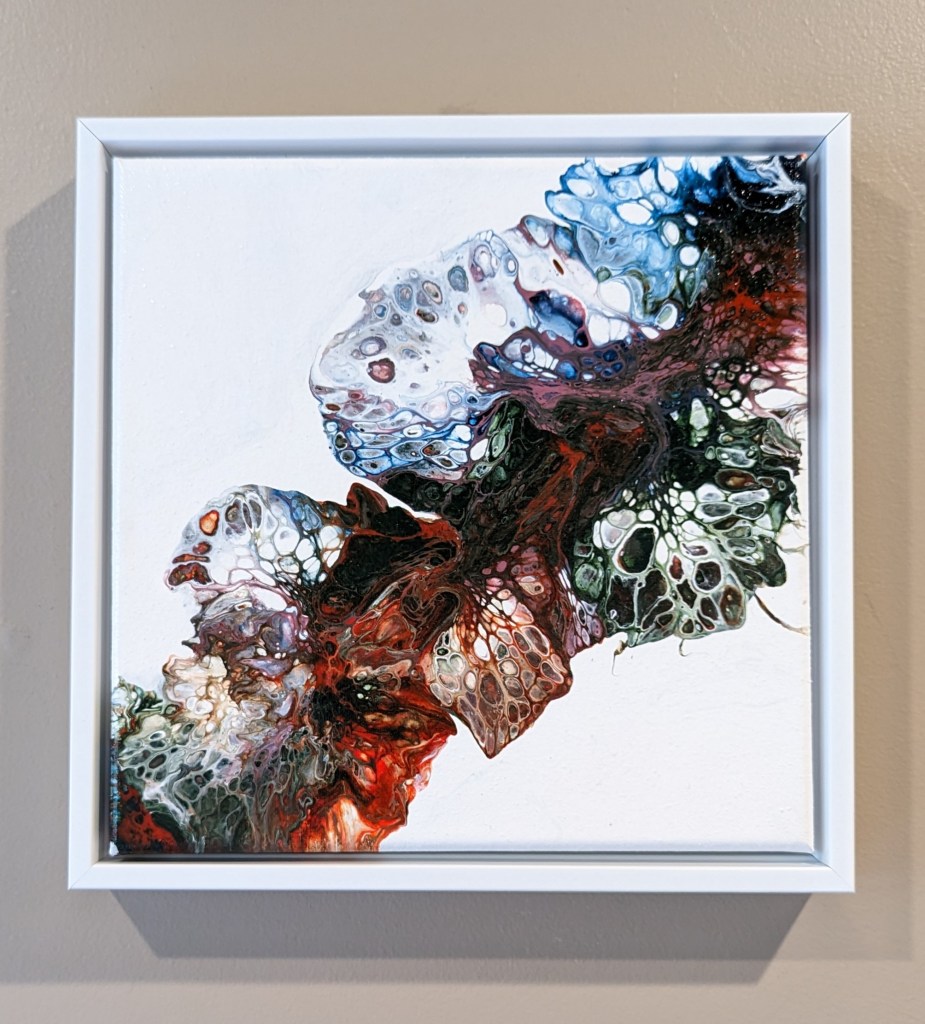 Bringing together a passion for art and a background in science, Jessica Tulloch’s captivating acrylic pour art seamlessly unites both worlds. After navigating through a challenging period, she discovered solace and inspiration in the realm of fluid painting, a medium that mirrors life’s inherent uncertainty. With a relaxed approach, Jessica finds beauty in the unknown, embracing the unpredictability of each artistic endeavor. Her acrylic pour creations reflect an organic aesthetic shaped by the principles of chemistry and physics. Colors, textures, and flows emerge which mirror the beauty of the natural world, space, and even the intricate details of molecular biology.