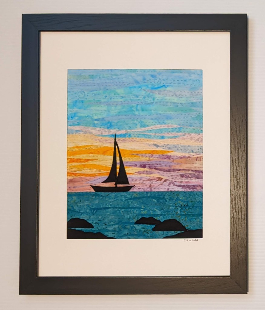 A long time West Seattle resident, Suzanne Uschold discovered a passion for art quilts several years ago. Inspiration for her art comes from the abundant natural beauty of the Pacific Northwest. Using only fabric and thread, she creates landscape scenes with a variety of techniques including collage, applique, thread painting and free motion quilting.