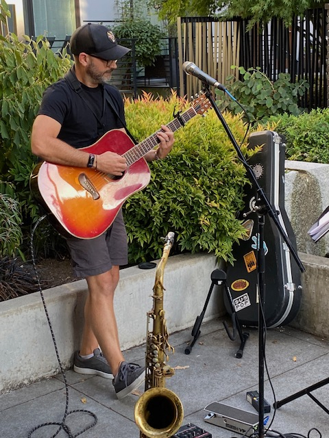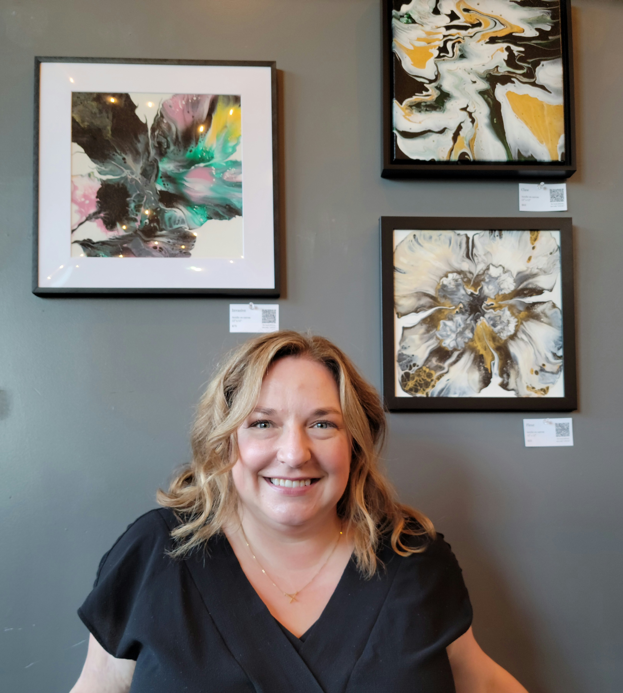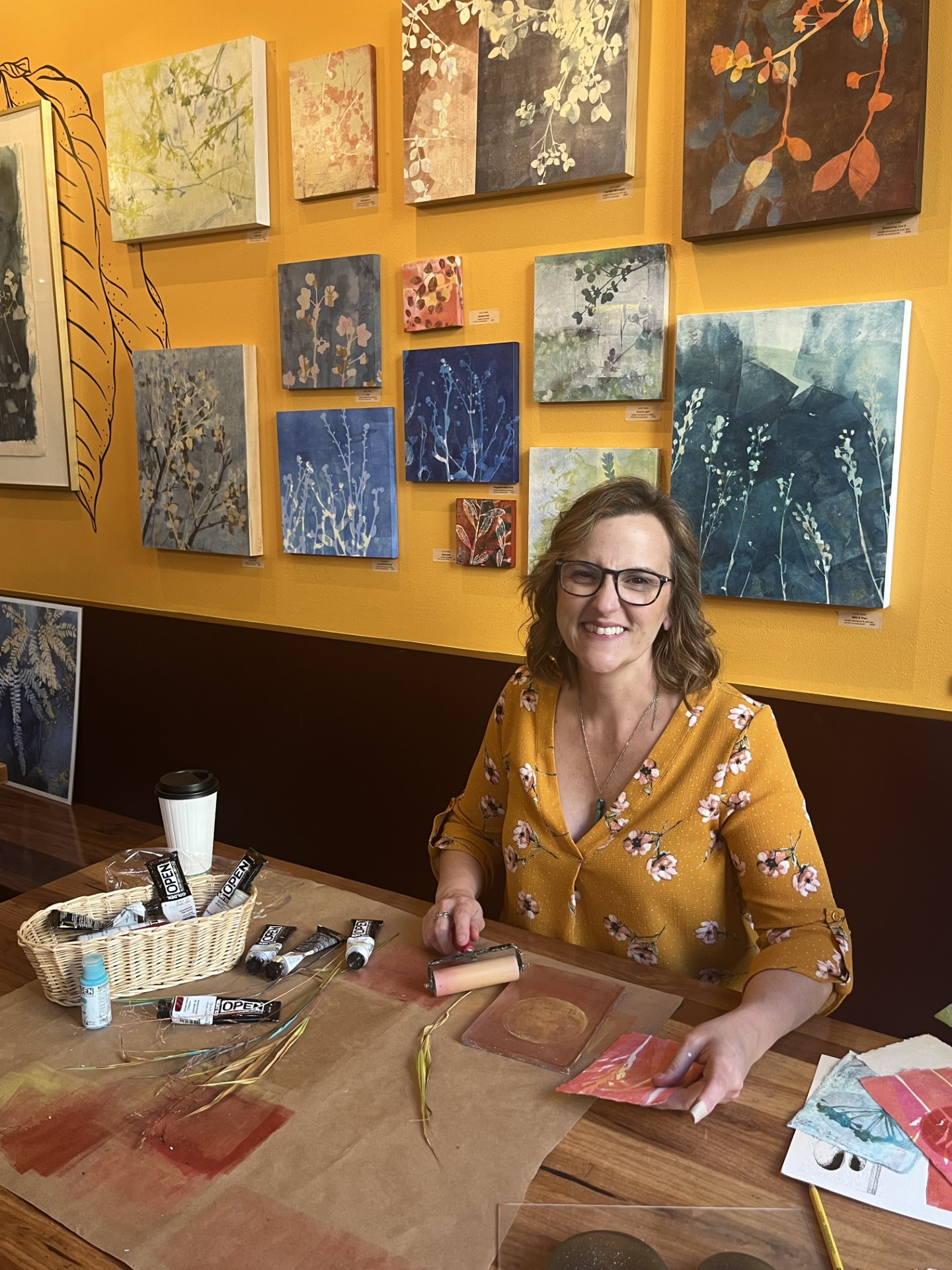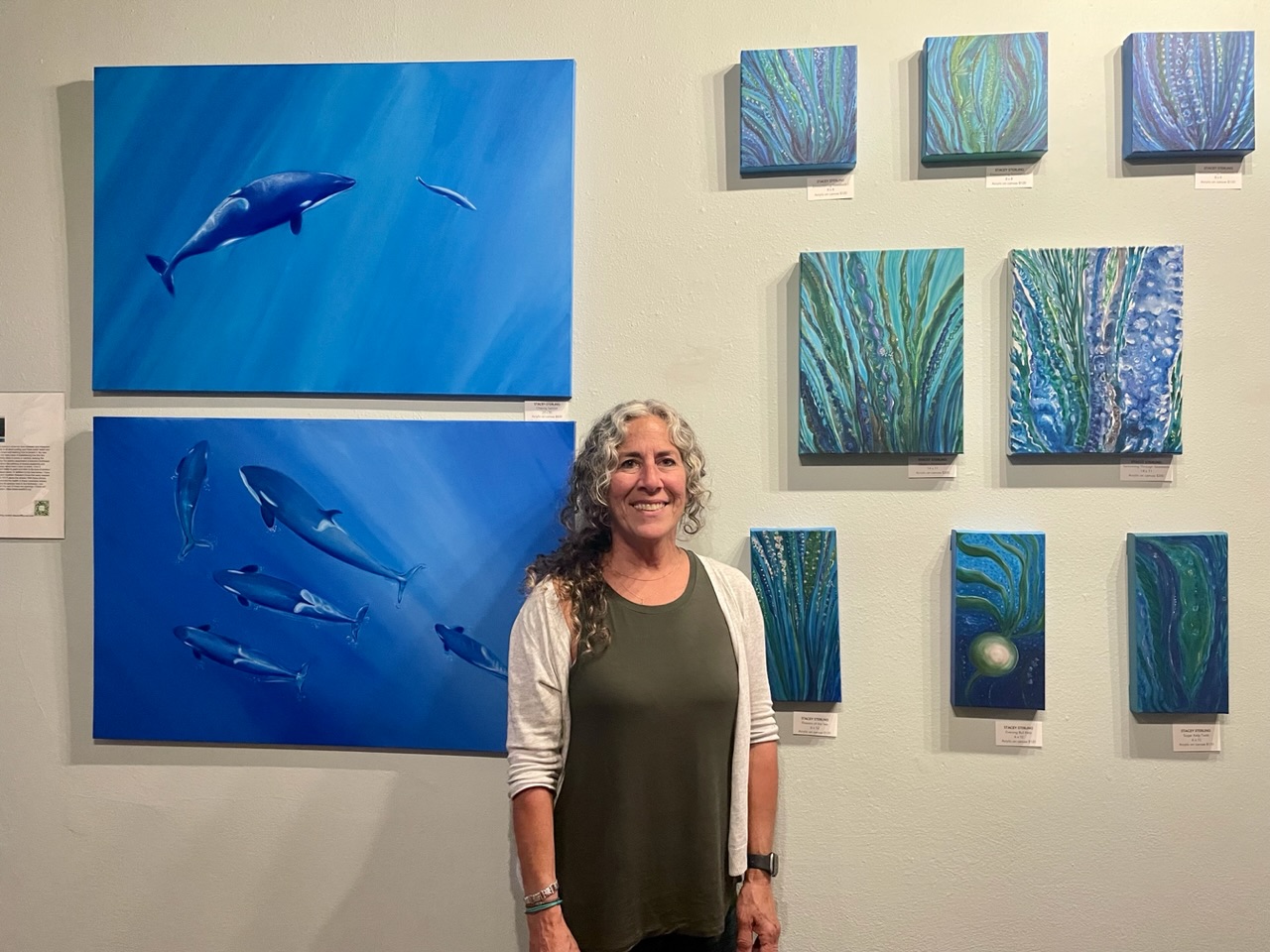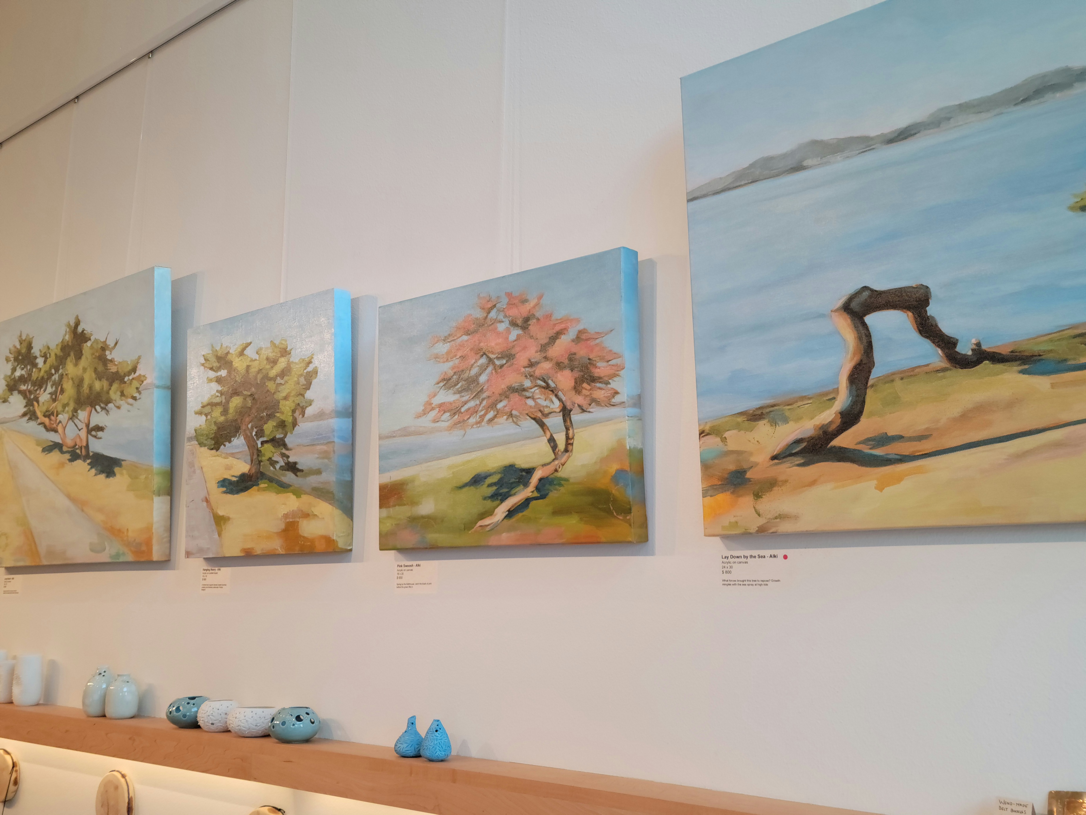 Up in Admiral, warm weather brought the crowd to Good Society Brewery for first-time Art Walk artist Jessica Tulloch’s show. The late summer sun and a nice breeze paired perfectly with her organic acrylic pours. Trevor Ras performed to a nice crowd at Welcome Road Winery. The winery was booked with seating outdoor seating reservations. At Wend, Carolyn Autenrieth captured the beauty of Alki’s trees against a seascape backdrop. A West Seattle resident, Carolyn was fascinated by their forms and shapes during walks along the beach and those in attendance seemed equally enthralled by the work. Our featured artist this quarter, Debbie Bianchi, brought a wonderful collection of prints to Southpaw Barbershop this month. Among her favorites were works featuring our feathered friends and backyard visitors, the Jay, and a pair of Nuthatches.
