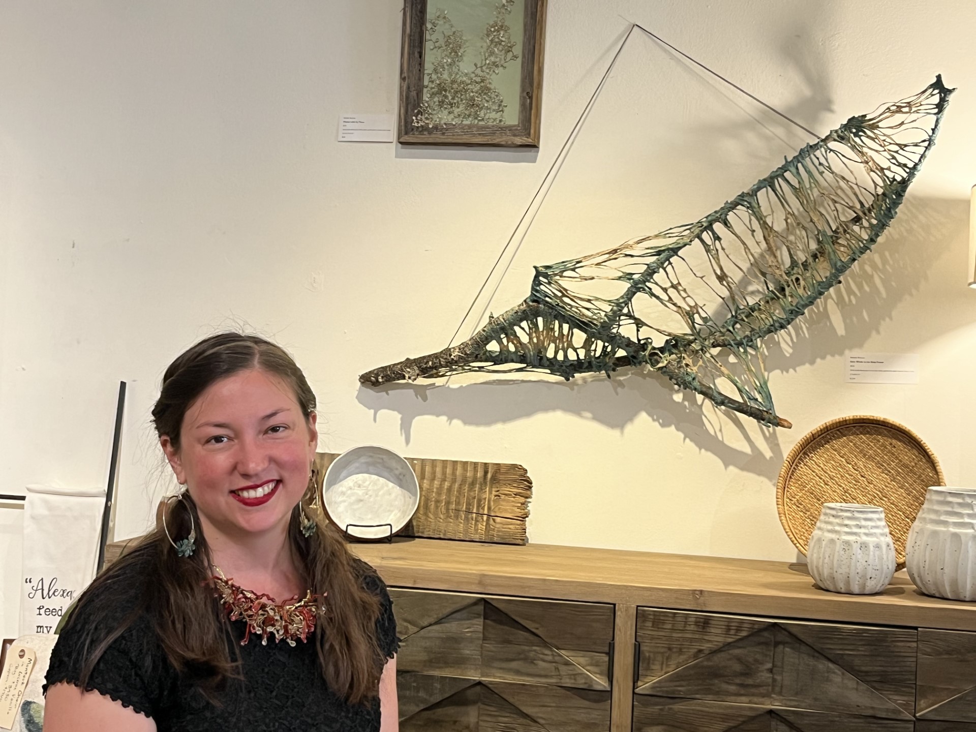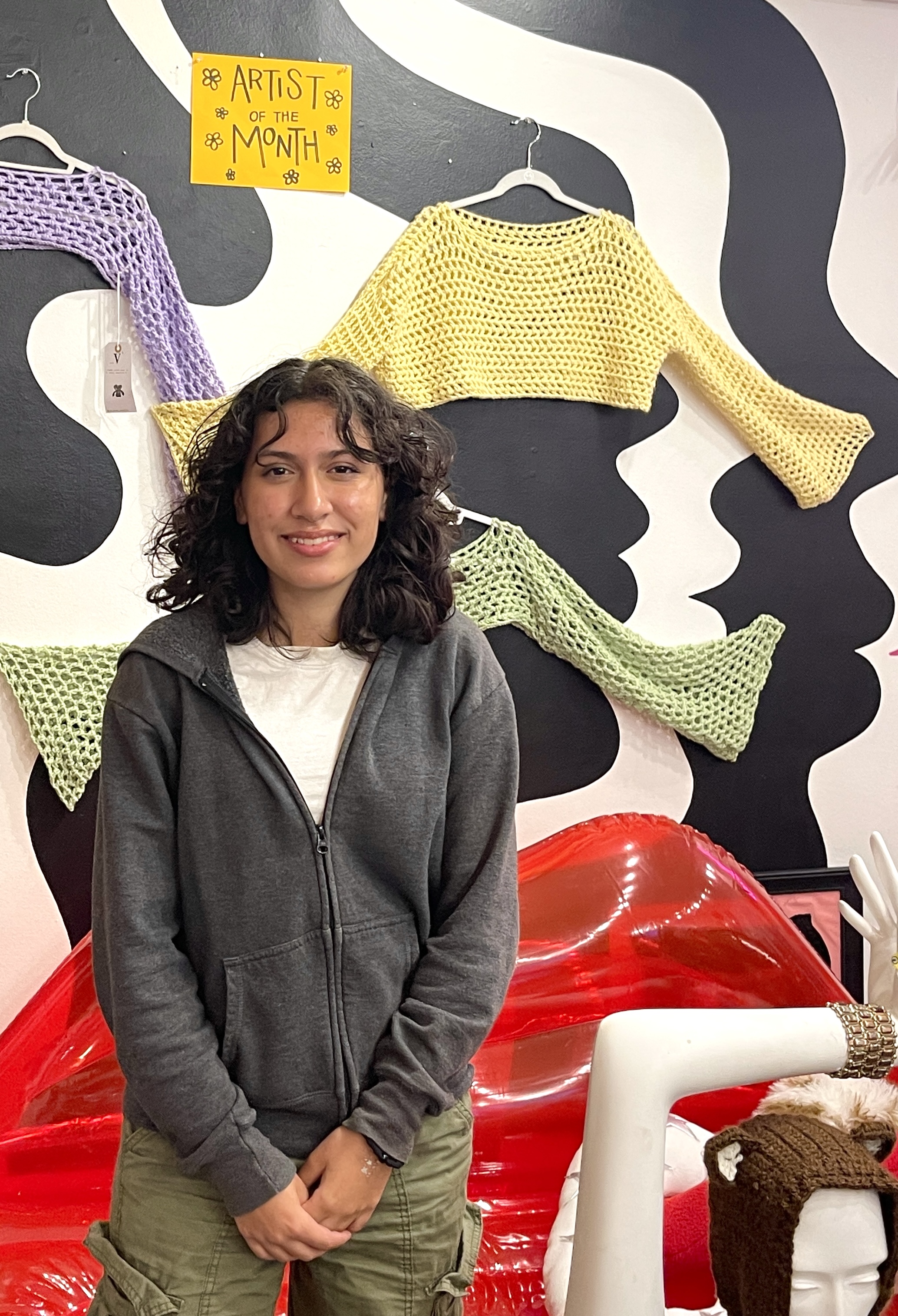 It was well worth the extra short block walk to check out all the amazing vintage merchandise at Doll Parts Collective as well as the incredible wearable crochet art of our youngest Art Walk artist Violet McKernan. Further down California, Inner Space Designs was bursting at the seams with art lovers. With the gorgeous woven art by Lenna Petersen and the crowd surrounding the artist, it was a real festive atmosphere!