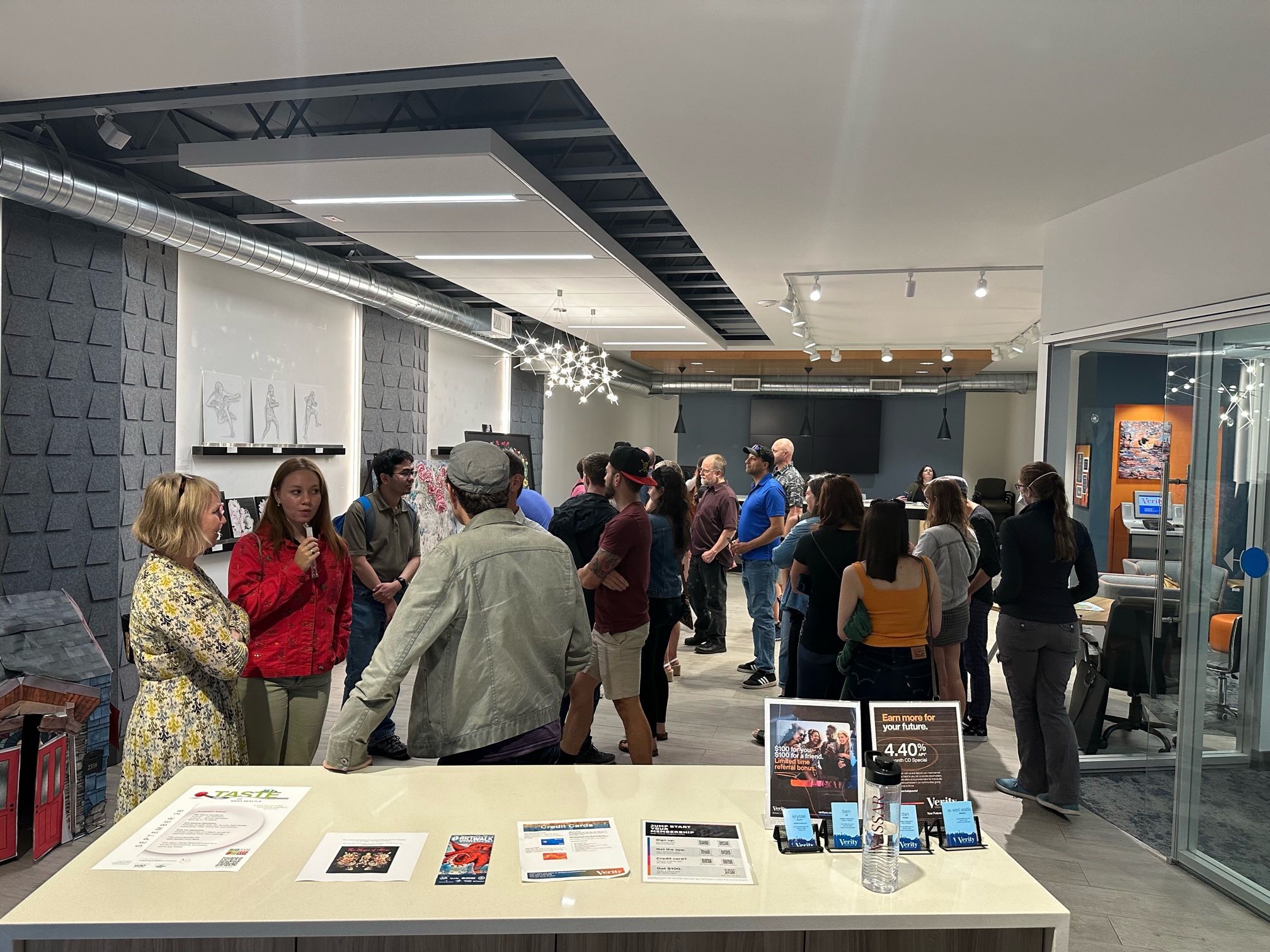 Our team of volunteer Art Walk photographers did a wonderful job of capturing the ambiance of the evening as well as the art and artists. Thank you, Meagan, Carole, Nancy, Michelle, John, Jacquie, and Jill. We couldn’t do this without you! If you weren’t able to come out, we hope you take a moment to check out photos of the receptions below or on social media. Or, better yet, come see the shows yourself. Most of the artwork featured will be up all month long, so do find time to visit these venues.
