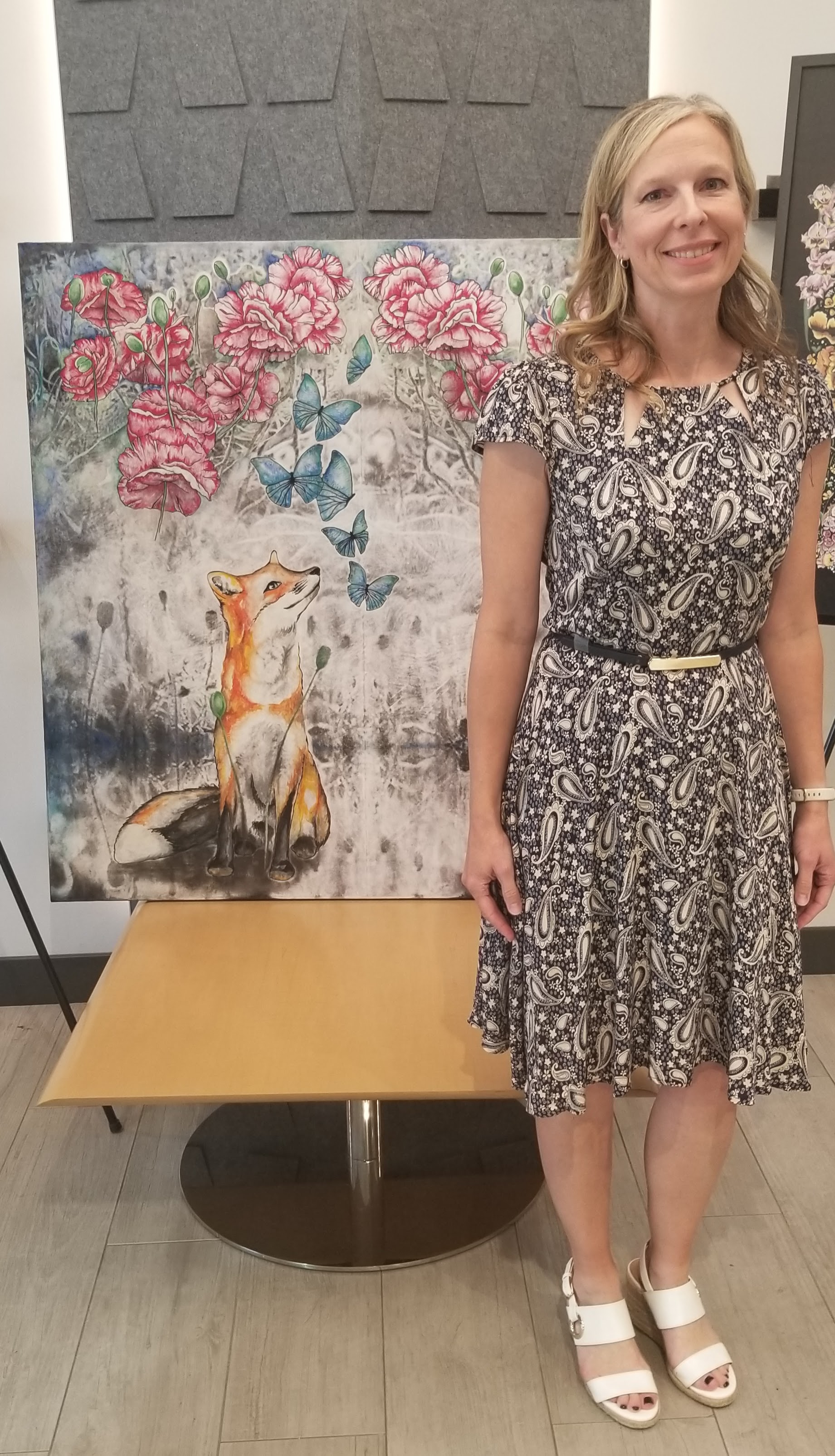 The Junction was alive with energy and enthusiasm for our businesses and artists. Lars Gesing Studio was tranquil as we entered on this sunny afternoon. The art was blazing in natural color as Lars shared with us adventures from a recent trip to Crete. Quail Park was warm and welcoming as we were guided by their friendly staff to view both resident and caregiver art in their dedicated art gallery. Verity artist Marie Skoor’s multimedia canvases were strewn with flowers to honor her Garden Art theme. John L. Scott artist Matthew Harkleroad brought a crisp modern energy to the office. Viewers were impressed with his passion and use of color.