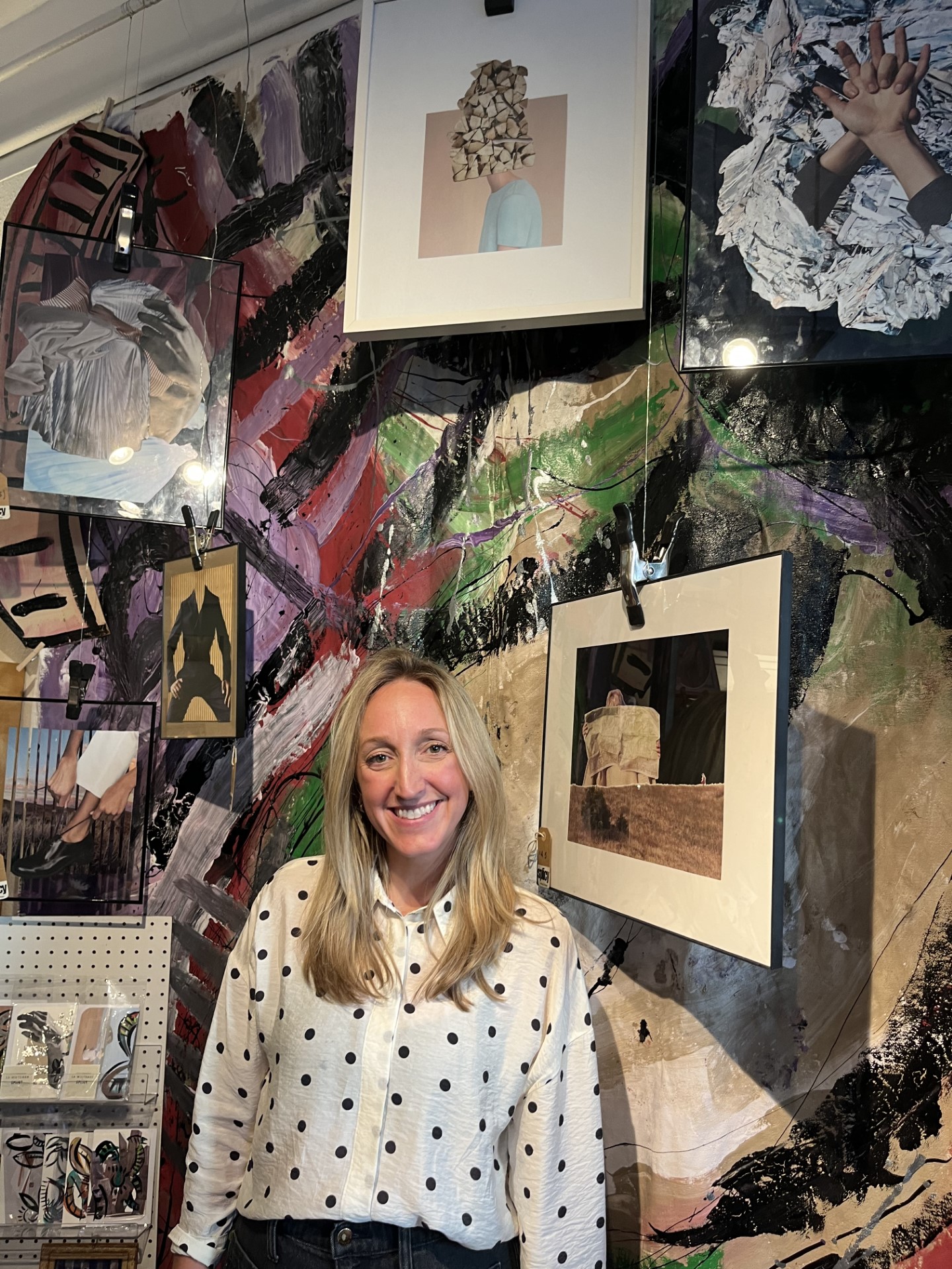 At Capers, performer Guitar Gil performed pleasant guitar instrumentals on an elevated stage allowing viewers to truly experience the music. Metalsmith and papermaker Melanie Brauner’s work fits perfectly into the display space of Capers. At Compass, Laura Van Horne’s huge show showcased her large variety of work. The place was buzzing with the flow of champagne and gorgeous apps. Liz St. Andre was making art on the spot at Wildflour Bakery, and a customer bought something she made that night. At Swandive, artist LA Wiltbank was there with Heather Wachter and Mary Carpenter of Give Paper Flora offering beautiful handmade flowers. There was more champagne, and the crowd was hopping!