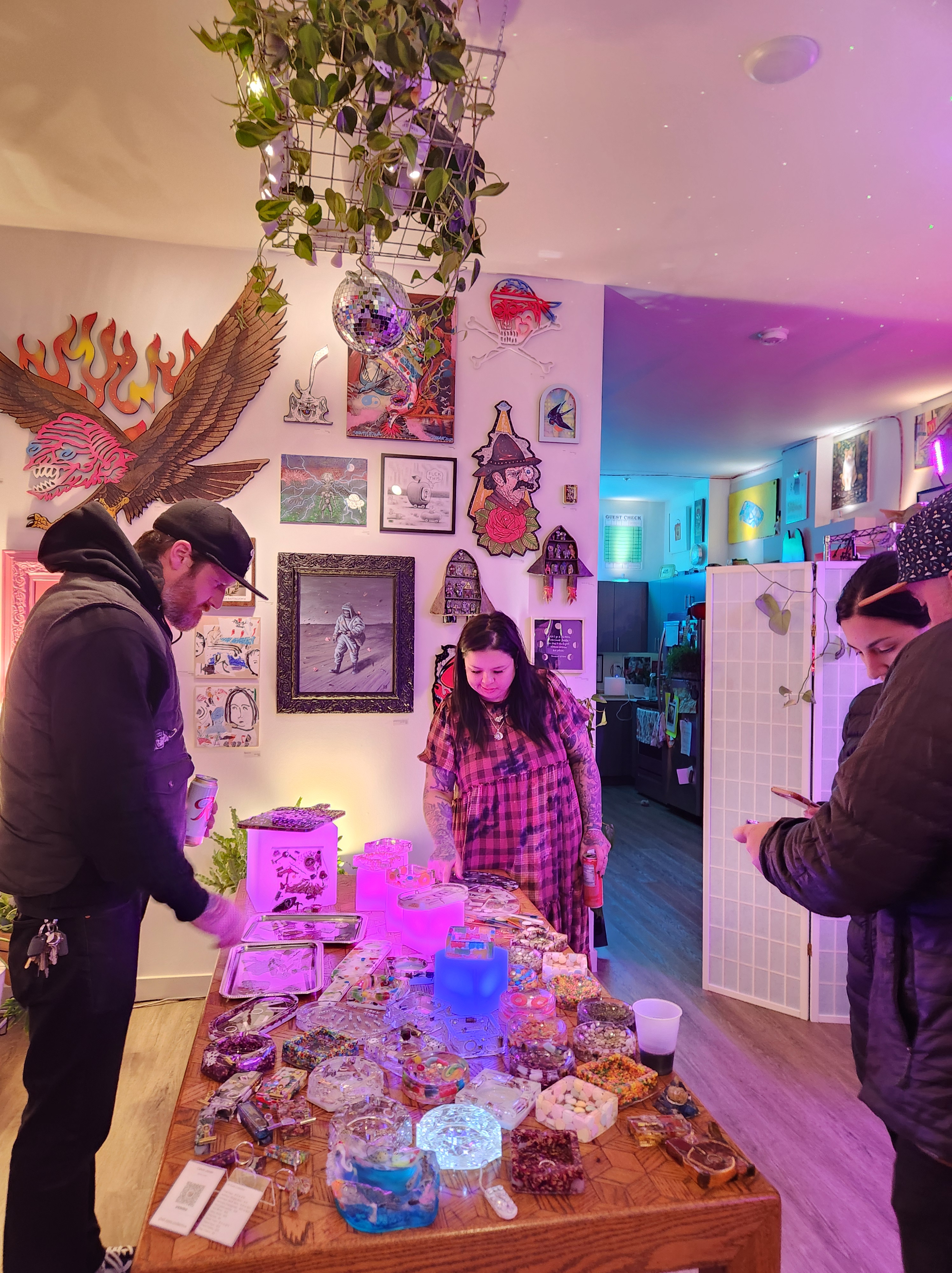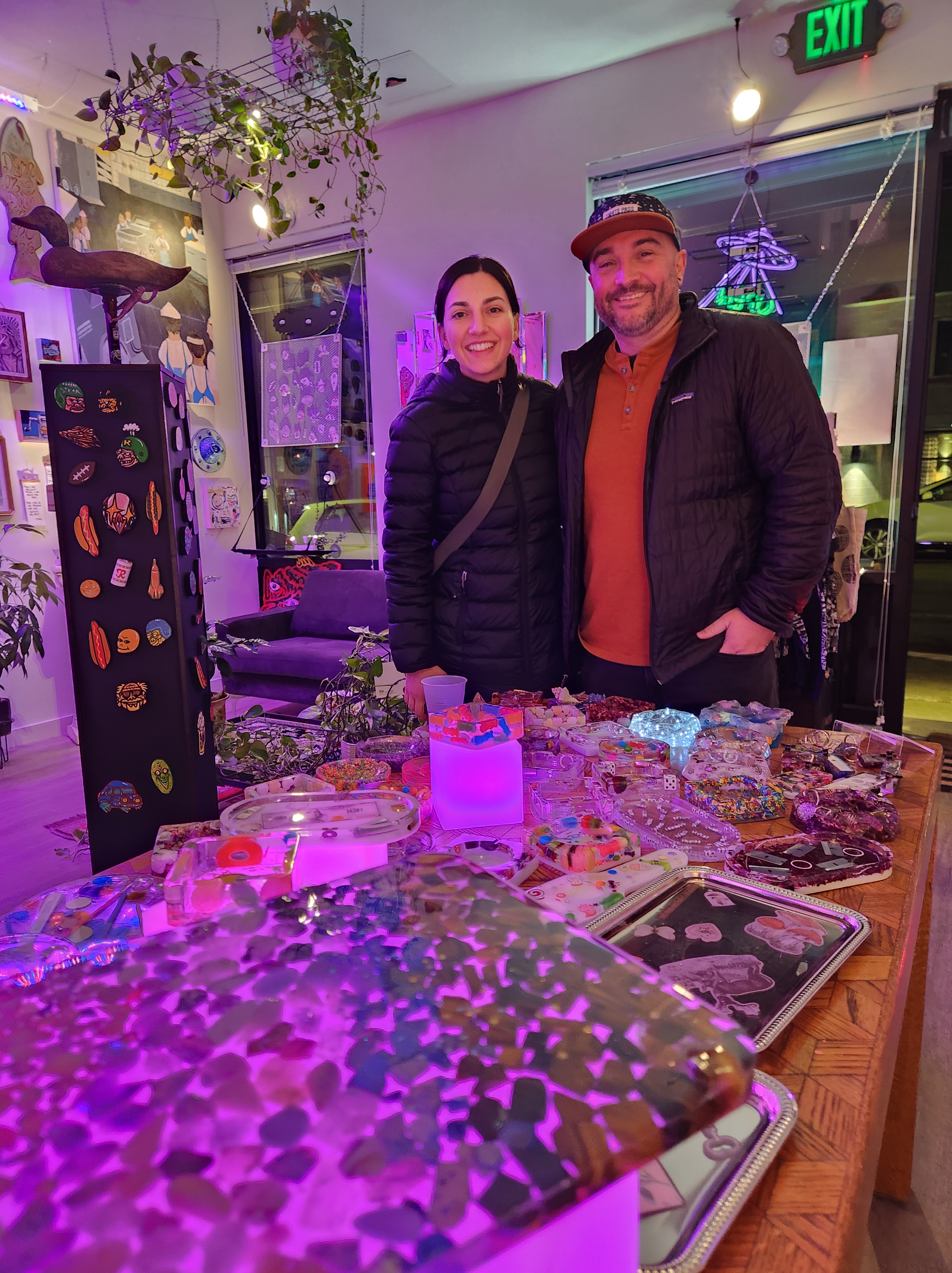 Art Walk wished a warm welcome to Space Gallery on Fauntleroy, a new start-up with 10-plus artists. The gallery features a wide variety of art from ceramics and wood carvings to watercolor postcards, acrylics, paintings, and more, we highly recommend checking it out! Lars Gesing Gallery was a warm spot on a cool balmy night. Spending time with Lars and his guests brought us to the sunshine that exudes from each of his photos. Over at Vain, the energy was buzzing, and we enjoyed the ambiance of beauty and service that highlighted the West Seattle-made and inspired scents of The Phoenix and the Fool.