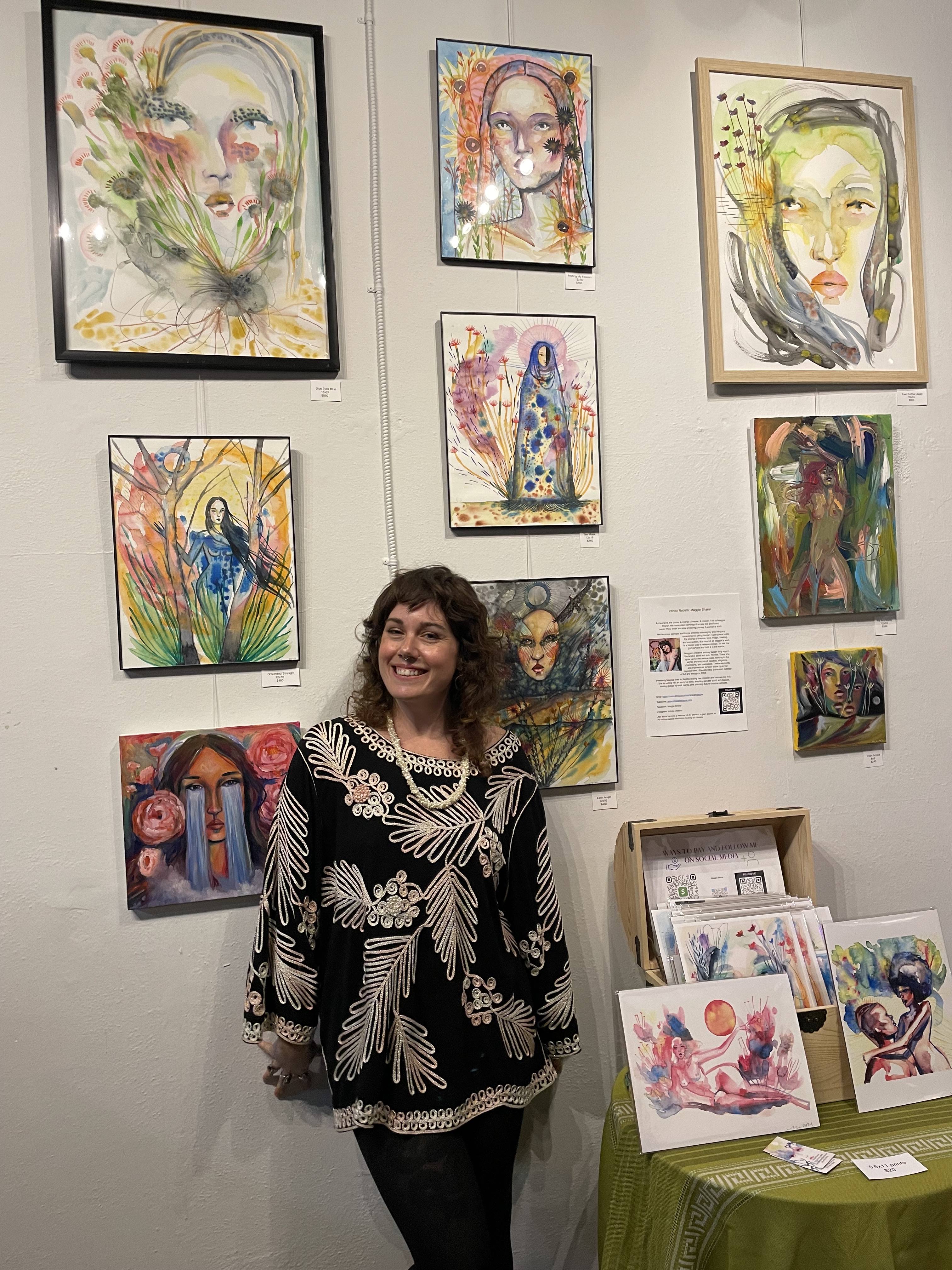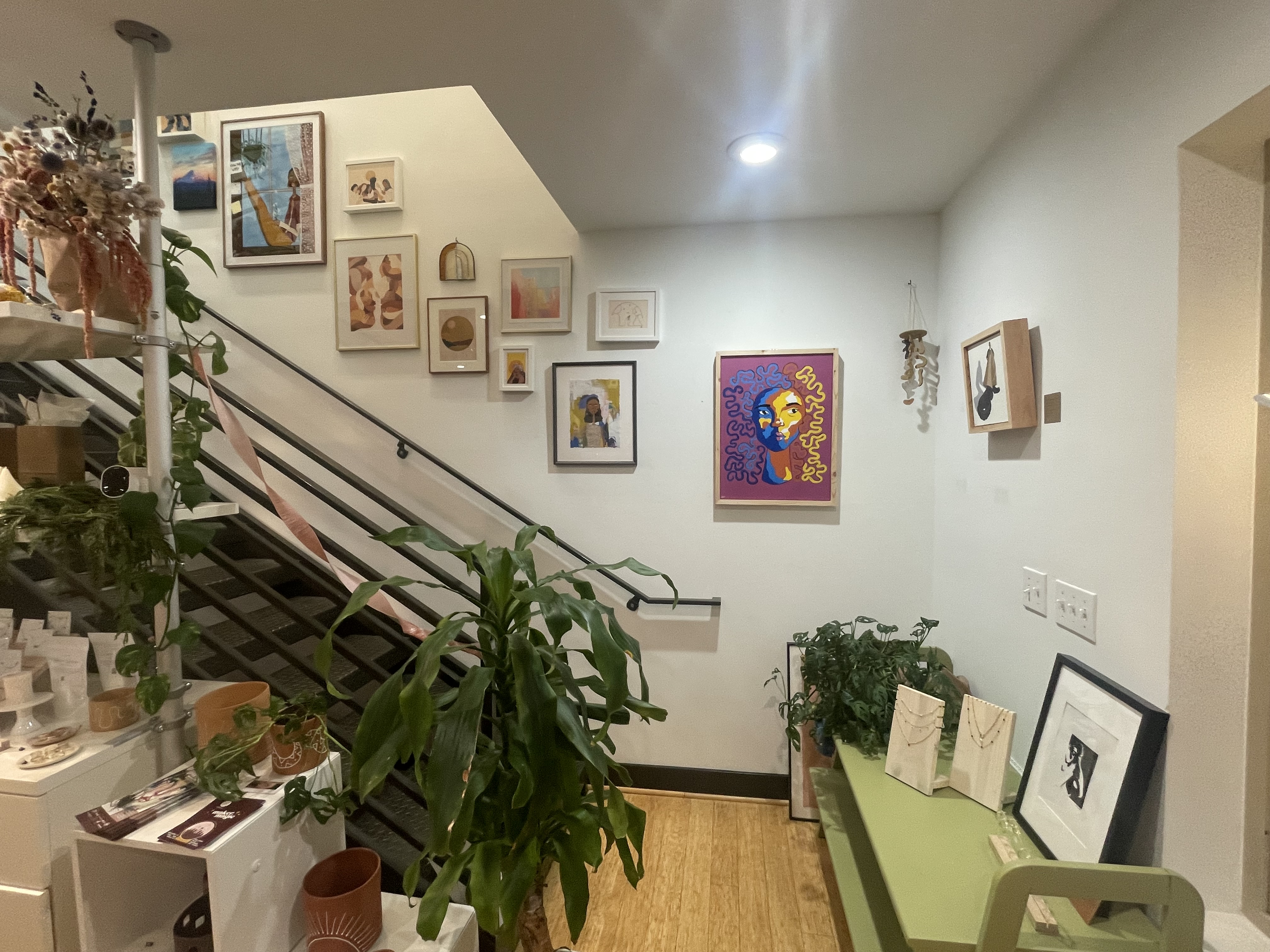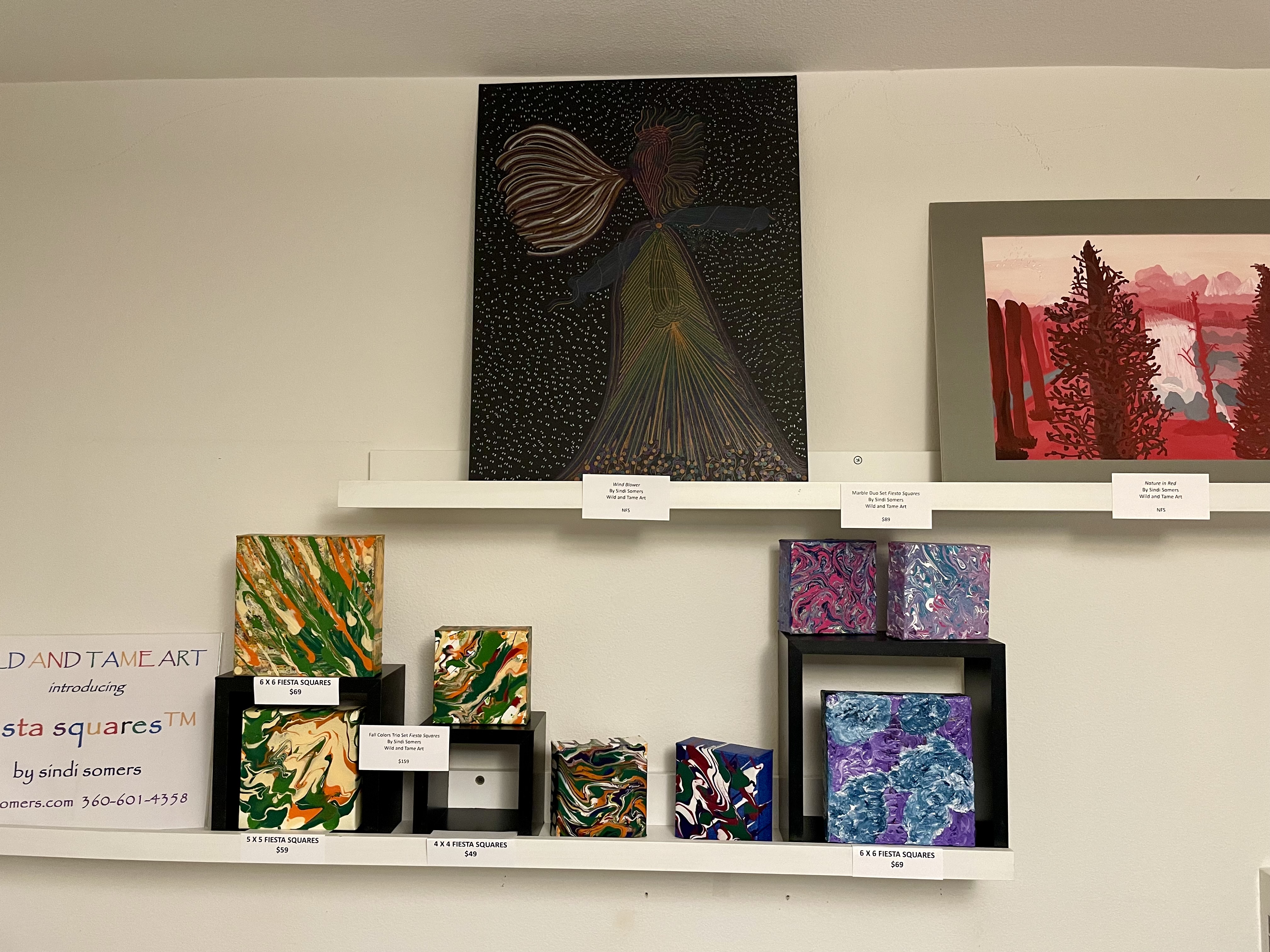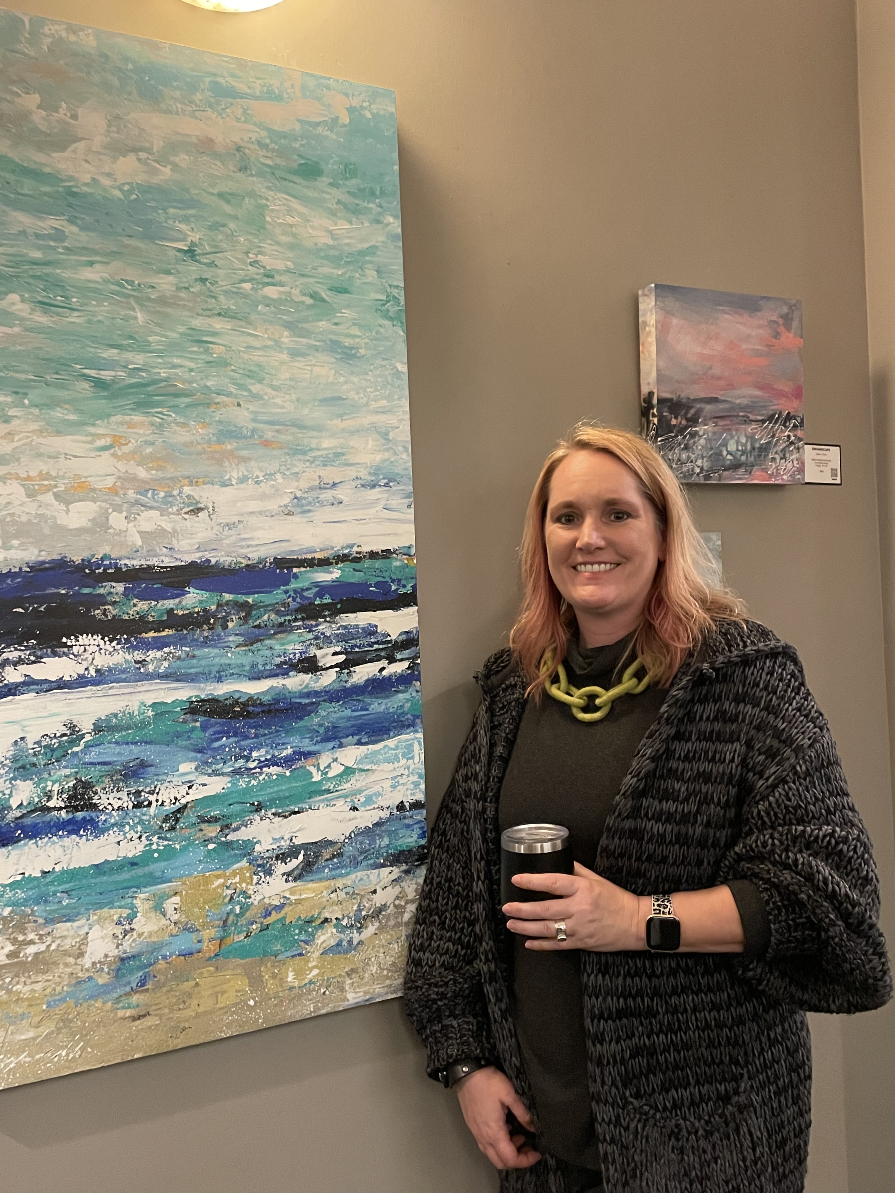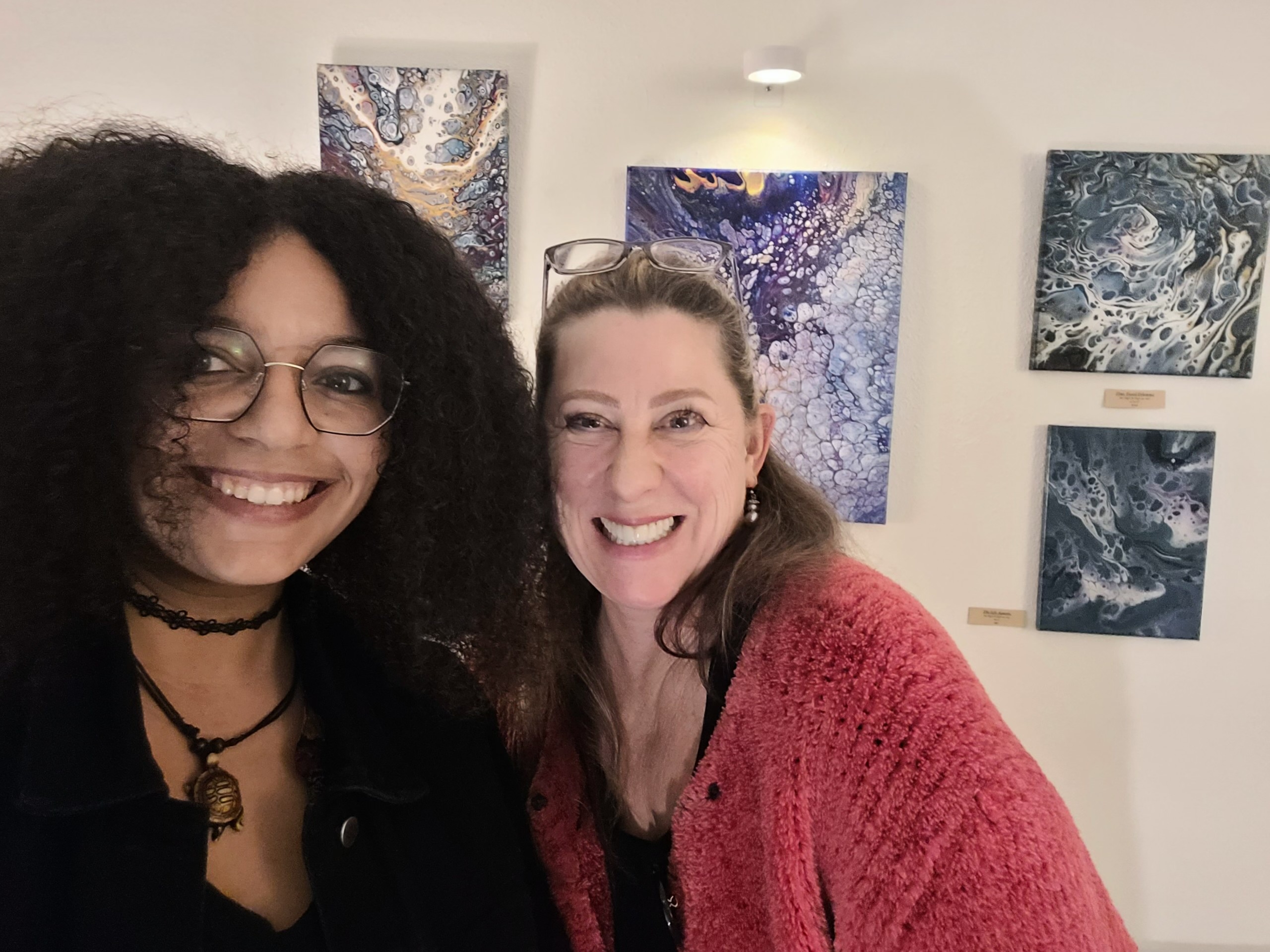 Verity was bright and cheerful with the works of Shelly Irish. Bold and vibrant works of both nature and land and moonscapes. The guests gathered to enjoy and soak up each piece’s energies. John L Scott had a hardy, holiday cheery vibe with the bold and vibrant works of Charell Williams, AI artist and Designer. His smile welcomed all who were there to explore the technical and visual gifts he brought to the gallery.