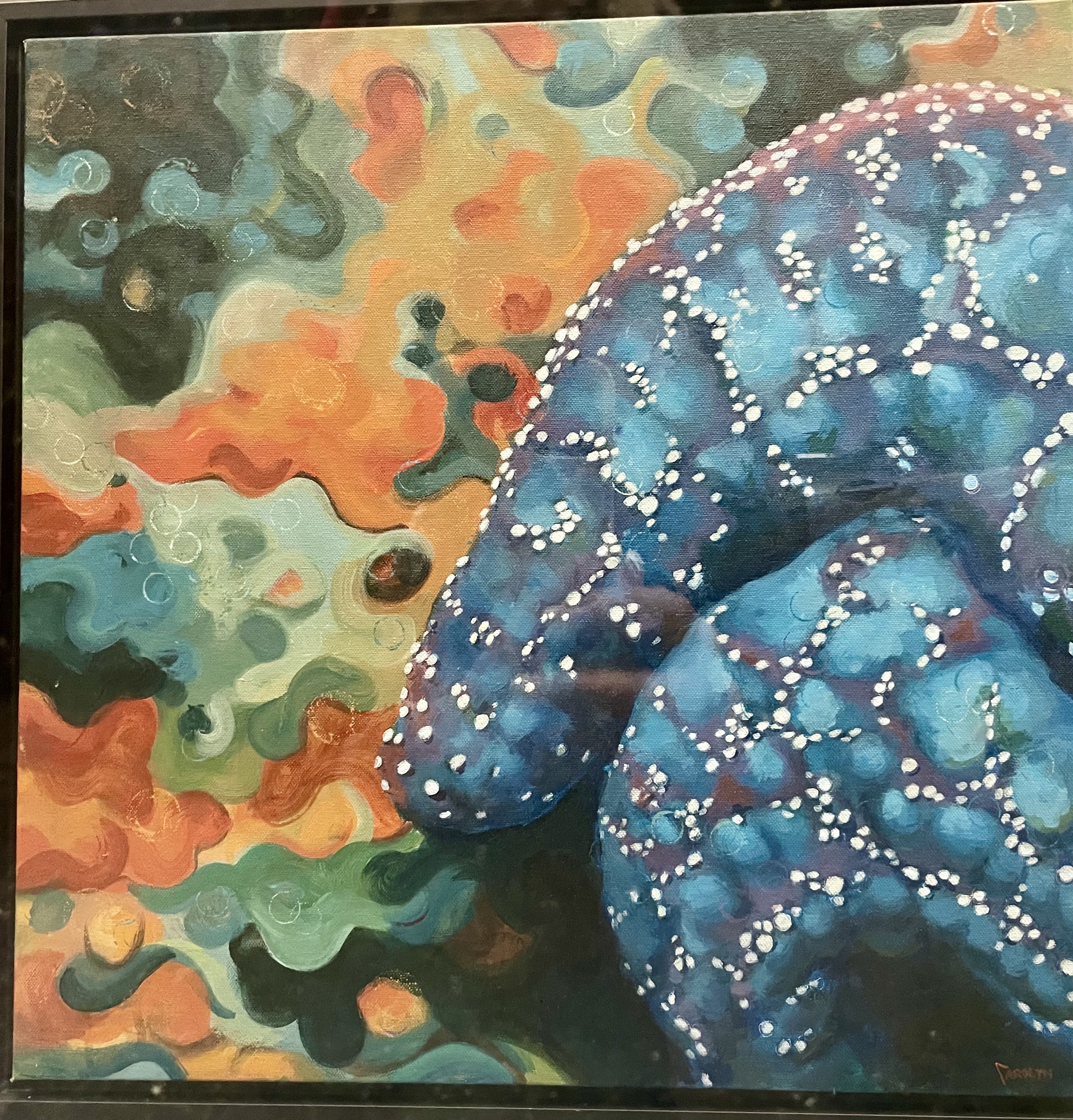 Capers Home, fondly known as simply “Capers”, is a West Seattle institution you don’t want to miss on Art Walk Night. Curated artists’ work is showcased among beautiful home and design goods- a double whammy for ideas on creating your best at-home environment. Artists Leon Lowman and Melissa Misoda, mixed media and glass respectively, were happy to share information about their creative process. How fortunate is West Seattle to have such skilled artists sharing their work? The rhythm, musicality, and joy of both Lowman’s mixed media and Misoda’s glassworks will enliven you.