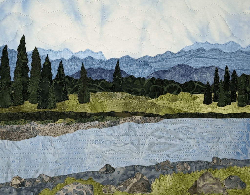 Suzanne Uschold has lived in West Seattle since 1987. After taking a basic quilting class in 2014, she quickly discovered a passion for art quilts, with a special interest in nature and landscapes. She never considered herself an artist until she realized she could “paint” with fabric and thread using a variety of techniques including collage, applique, thread painting and free motion quilting. She has shown her work in a variety of places including the International Quilt and Fiber Arts Festival, the Pacific NW Quilt and Fiber Arts Museum, Schack Art Center and Vashon Center for the Arts as well as many local businesses.