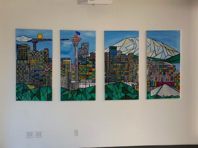 This post’s hero artwork is by Ellen Zrimsek . Ellen’s art is showing this month at John L Scott West Seattle .