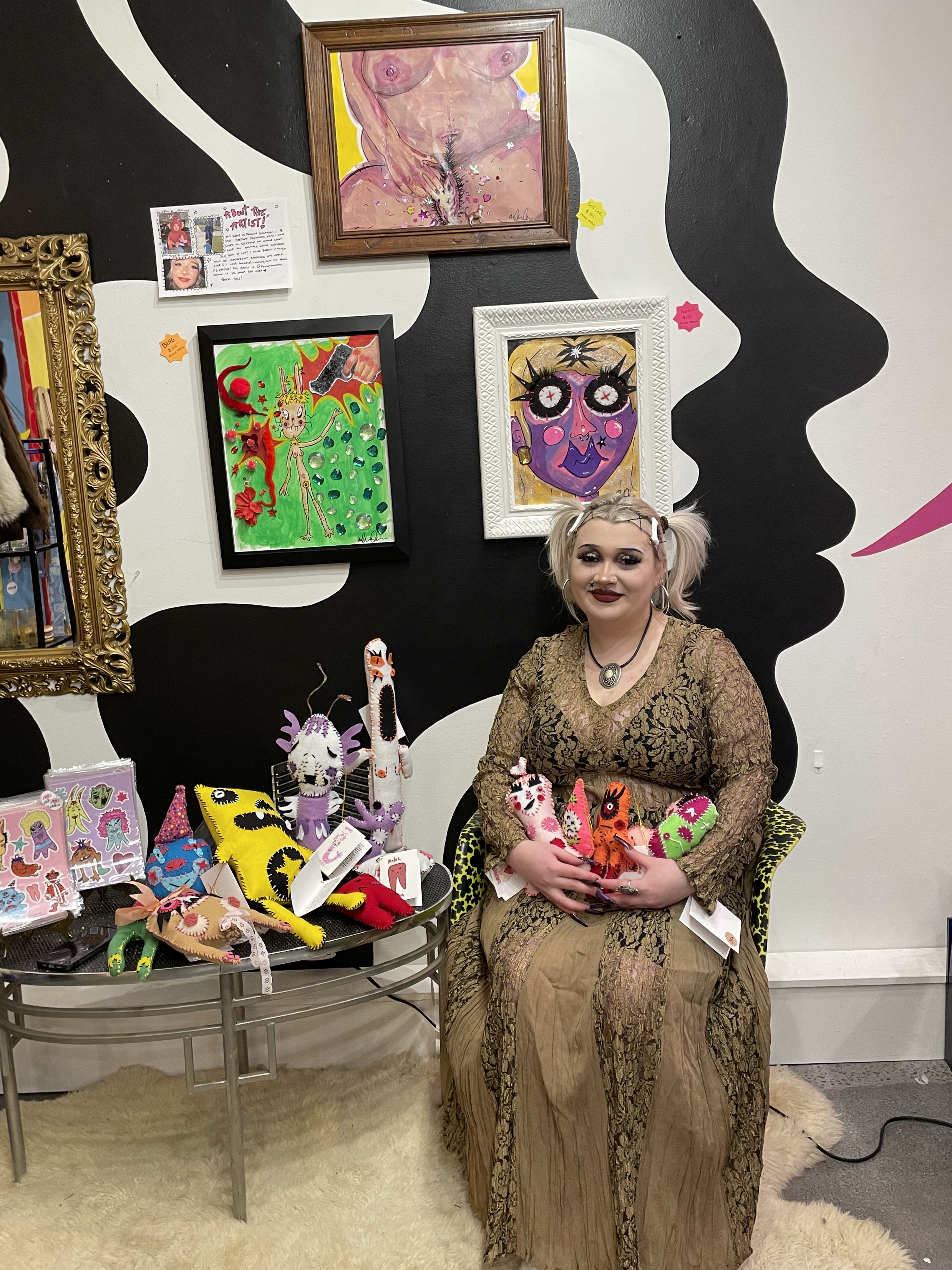 Doll Parts always has a fun, funky, grown-up – Candyland vibe. They featured a young artist, Paloma Gulassa, whose mom was there in support, and they were having a great time with Doll Parts co-owner Alyssa.