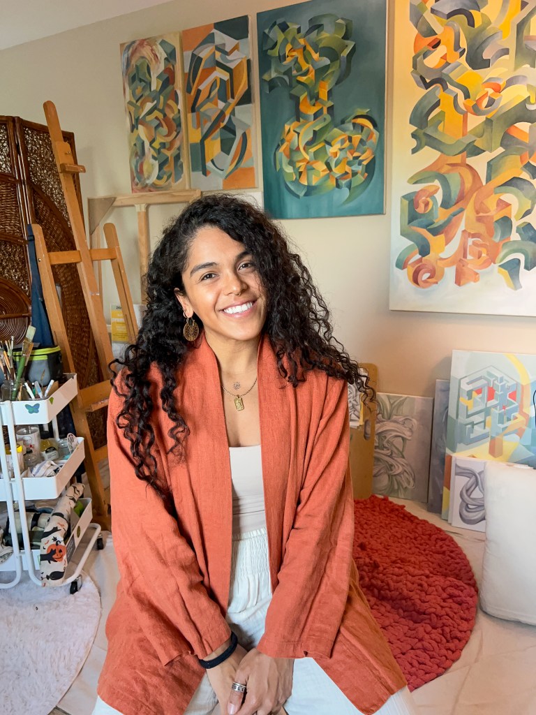 Julissa is a painter, multi-disciplinary artist and an architectural designer who creates forms through a blend of color and light. As a practicing architectural designer, her work is inspired by the spaces we take up and how they often reflect our inner selves. She is fascinated by the manifestation of energy into form through all the many facets of life. She conveys a narrative of her life’s story through the way form moves across the canvas. Born in a small town in Honduras , Julissa currently resides in Seattle , WA.