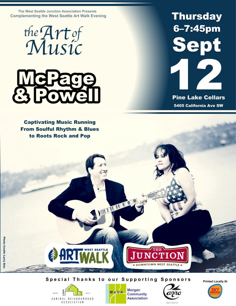 September 12 – McPage & Powell @ Pine Lake Cellars in the Morgan Junction.