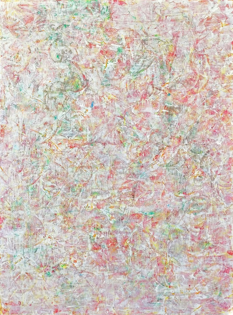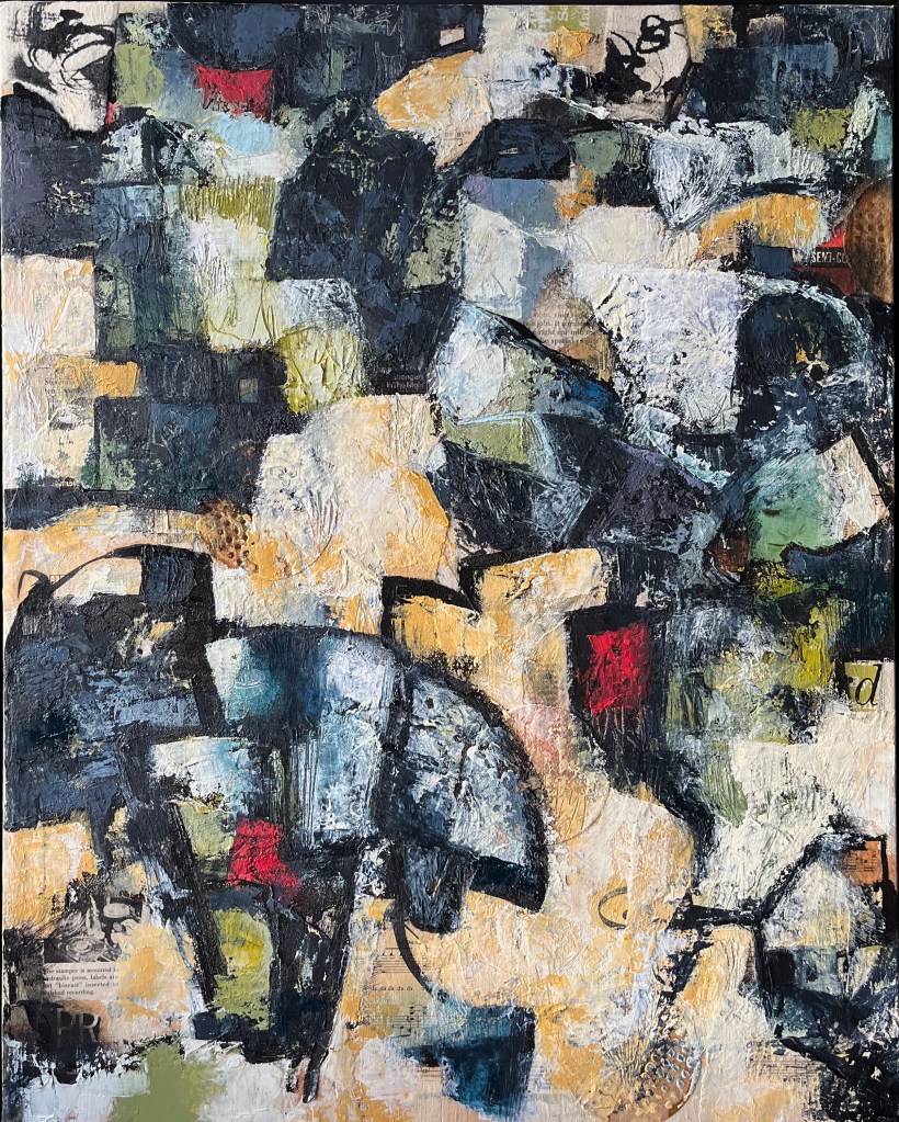 Jessie Summa Russo studied printmaking and painting at Sarah Lawrence College in New York and illustration at Massachusetts College of Art & Design. Based in West Seattle since 1997, she founded the venue Skylark Café & Club in 2006 and ran it until 2013. She is currently the Gallery Director at Gallery 110 in downtown Seattle. The pieces in this show are from two collections. Cosmic Grids: At its most basic level, our universe exists as a “vibrant energy field” that Nobel-winning physicist Frank Wilczek calls The Grid. In these collaged oil paintings, each square represents a life—some bright, some indistinct, some full of contrast, and some just a brief and incomplete sliver—that belongs to and in the blue-black void of space equally. Morphetica: These abstract expressionist paintings are inspired by recurring dreamscapes and hypnopompic hallucinations—vivid sensory experiences that occur as a person wakes up from sleep.