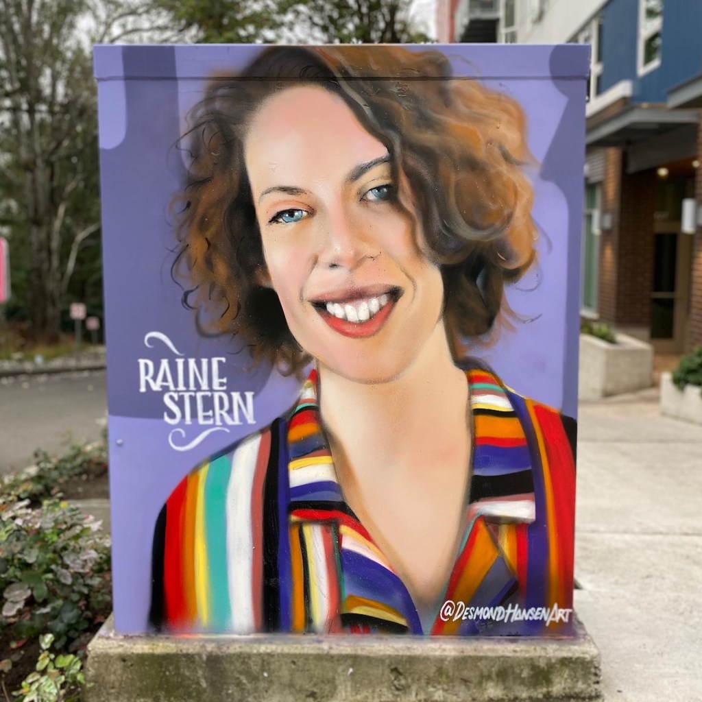 The artist, Emily Juarez, lives in West Seattle. Emily works with local pups and coffee beans. She’s a lifelong artist, wanderer and silly goose. When she’s not creating art pieces, Emily spends her time with her partner and pup, Ben and Finch, making music, playing video games and dog training the local canines.