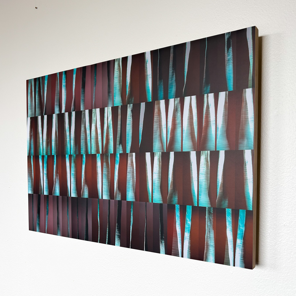 My medium is encaustic painting, the ancient technique of manipulating pigmented beeswax on panels. The process involves applying heated beeswax onto rigid surface, such as prepared wood. The colors are achieved from adding pigments to the melted beeswax. The medium’s luminosity and depth have led me through a series of studies of abstract compositions built with strong graphical relationships and layered with rich colors. My work is restrained, yet complex; inspired by nature, but abstracted in its use of forms. Encaustic painting has allowed me a way to open my artwork to a new level of abstraction while still maintaining my connection to the natural world.