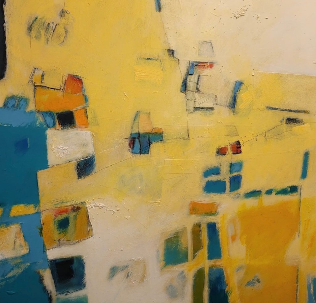 I was first introduced to painting with acrylics as a teenager, by my high school art teacher. At first I painted Caribbean land and seascapes while growing up in Puerto Rico. I then slowly began experimenting in abstracts and collage. My focus is to create vibrant abstract compositions that reflect my past surroundings in the Caribbean – the contrast the strong sunlight creates, the open spaces, the freedom of the ocean breeze, and the joyous and spirited lifestyle that flows freely on the island. The challenge of creating an abstract composition that makes sense to the artist’s eye brings excitement to the process of painting. Painting allows me the freedom to borrow from my past, experiment in a meaningful context, and paint in a way that reflects the way I feel about the world today.