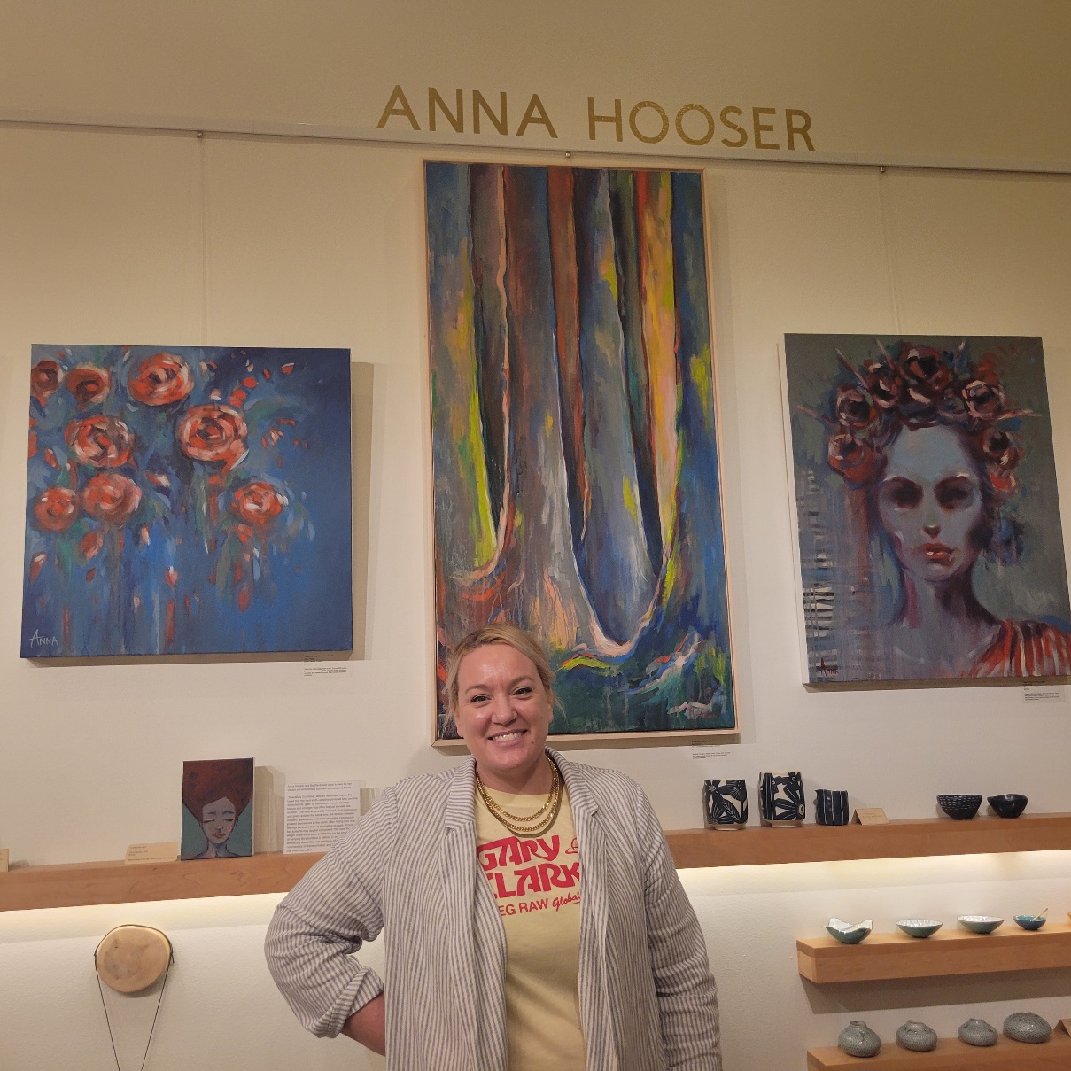 We had the privilege of meeting T. Frick, a self-taught artist and licensed Landscape Architect, during the West Seattle Art Walk. T. is not only a talented female entrepreneur but also a passionate creator whose work is rooted in her lifelong love of art and nature. T. has found inspiration in nature’s textures, colors, and forms—elements that continue to shape her vibrant, abstract landscapes today. Working in oil, cold wax, acrylic, and mixed media, T. embraces an unplanned, organic process where her pieces evolve through mark-making and movement. She often jokes that she “dreams in trees,” as they frequently find their way onto her canvases, becoming beautiful, spontaneous expressions of the natural world. T’s collection ranges from smaller, intricate paintings to larger works in progress, with custom commissions also available. For those interested in joining her on a journey through her unique artistic lens, T.’s work can be found online, where you can dive into her captivating world of colors and landscapes. If you missed her this evening you can catch her again in next month’s art walk. For more information about T check out her website.
