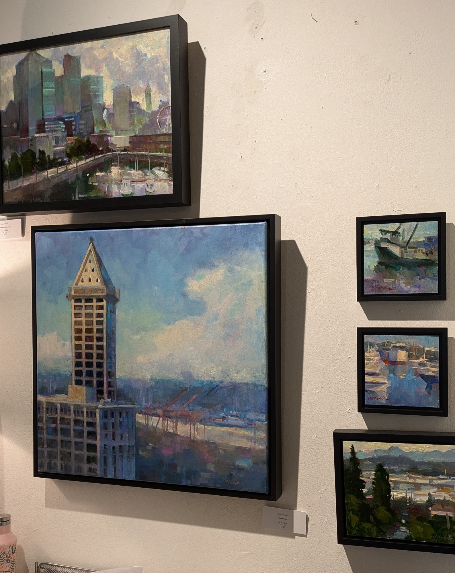Janice Kirstein’s work is currently showcased at Capers in West Seattle. She studied under Henry Stinson in Seattle, where she embraced Sergei Bongart’s color theory, deepening her love for painting outdoors and inspiring her focus on light and design. Known for her “gorgeous transitions of color,” Janice brings vivid back-lit flowers, puffy cumulus clouds, and Seattle’s fishing boats to life on canvas, drawing viewers into the atmospheric beauty of each scene. Her subject is often secondary to the intriguing play of light and bold composition, capturing the essence of the moment. See more about Janice at her Instagram or webpage.