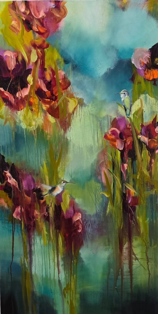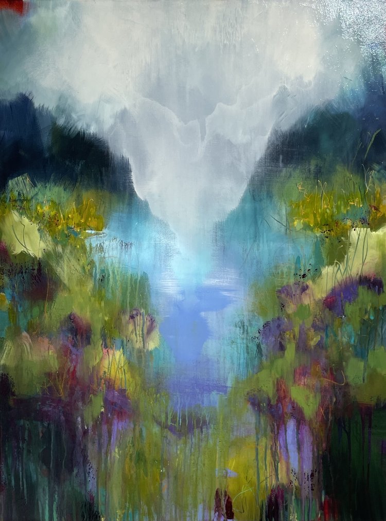 My inspirations are often the play between theories in physics, nature, and philosophy, particularly synchronicity, which is an ongoing theme in my work. I always enjoy the intuitive nature of pushing paint and mediums around on the canvas to see where the painting organically wants to go, and I often begin without a plan in mind. It isn’t until the painting has marinated for a while, that a subject may or may not reveal itself through a random line or shadow in the texture. I enjoy abstracts and representational work, and sometimes in the same painting.