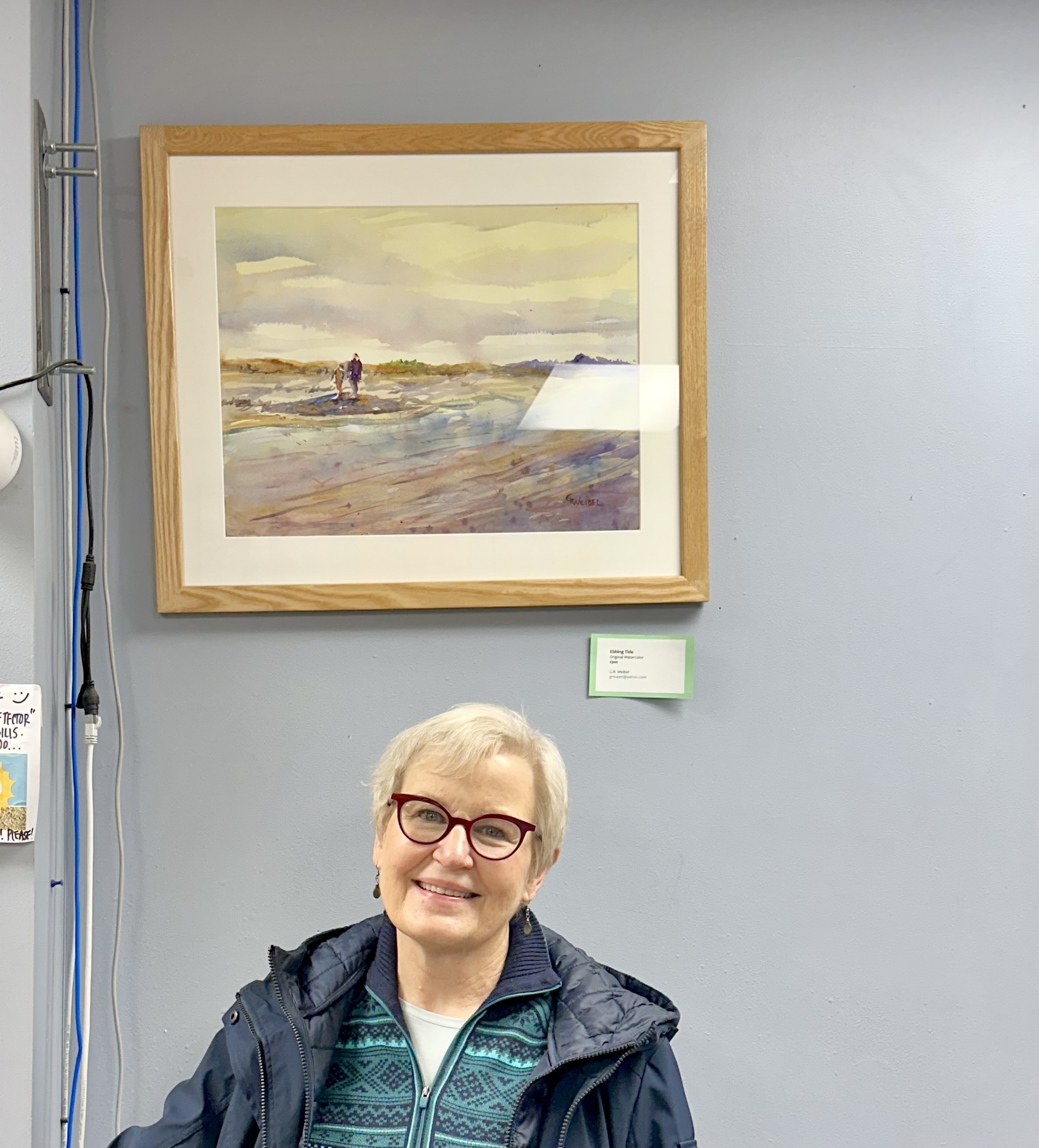Mailbox West featured multiple artists, but we met with Glenda Weibel, who has many watercolors. Her work is especially unique, in that she paints on tissue paper before mounting the painting on a canvas, which allows her to not use glass to preserve the painting.