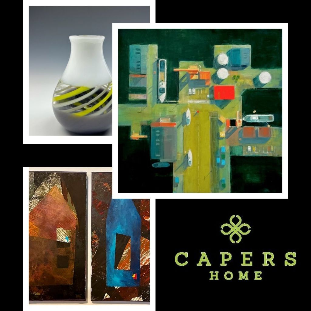 Jan Koutsky makes a long overdue return to Capers Home for March and April. Beautiful warm Spring colors. One more month for Rebecca Woodhouse-please don’t miss. Misoda Glass is in with vases in swirling Spring colors. Kelly Bailey brings a plethora of color…inviting you to look in and look back. Lea Basile-Lazarus continues with her Safe Place series…the safe place with family and friends.
