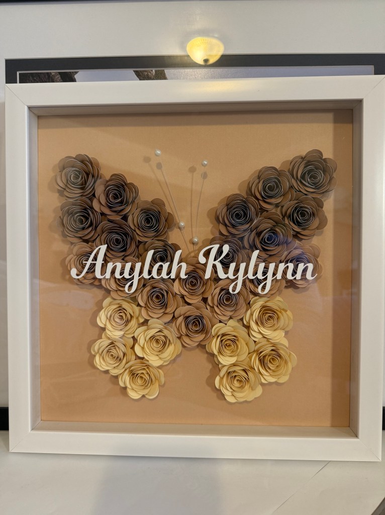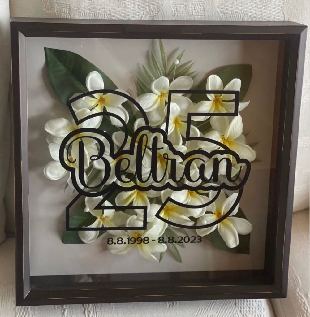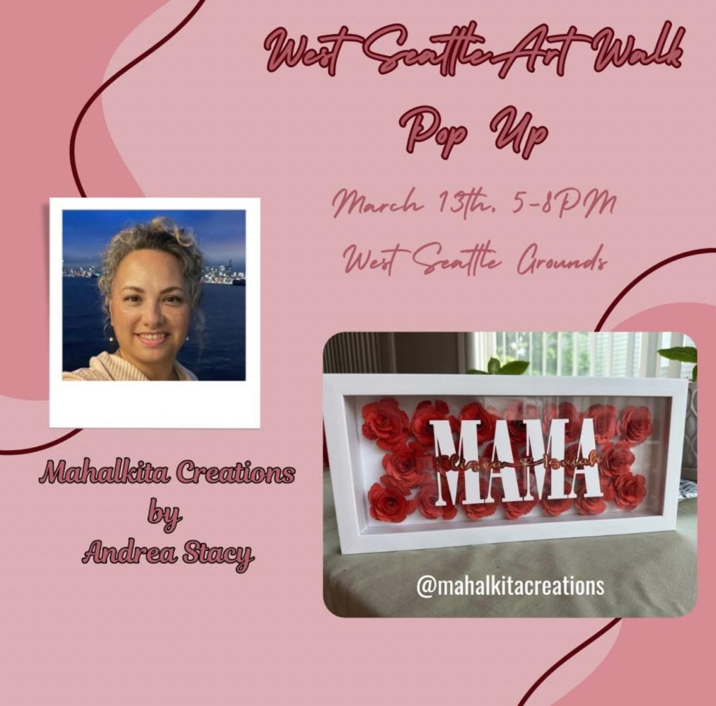 My name is Andrea. I’m a local artist in the greater Seattle area and owner of Mahal Kita Creations since 2021. With Filipino roots Mahal Kita means I love you. What better way to say I Love You for any occasion than with a personalized shadowbox gift. Inspired by a shadowbox gift received many years ago, I began designing and personalizing shadowboxes. I use craft vinyl, paper, silk flowers, cricut and shadowbox frames for each piece.