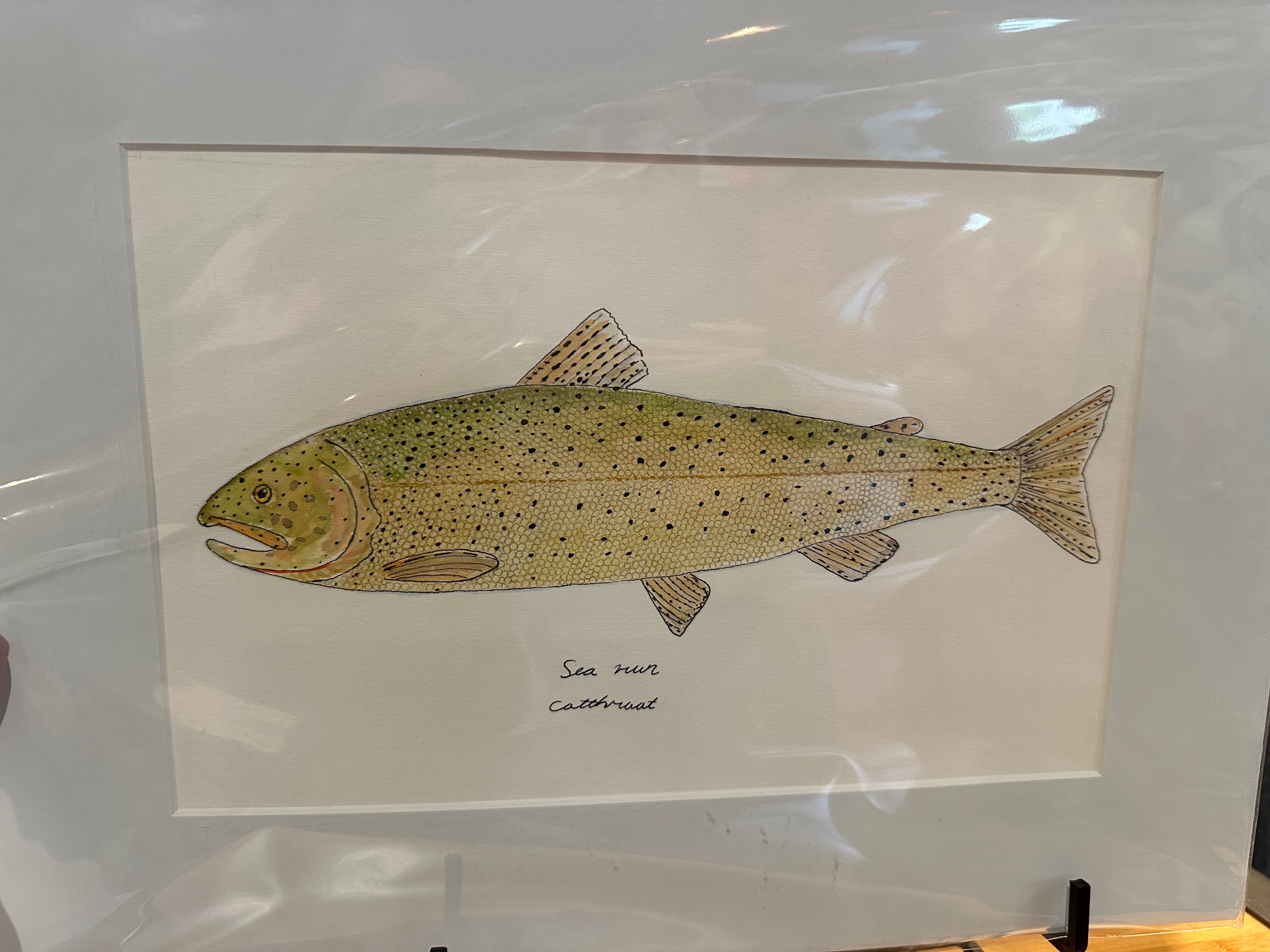 Emerald Water Anglers, a new to Art Walk business, featured a large painting by Joseph Rossano done exclusively for EWA. In addition, EWA had hand painted artwork done by a local highschooler from West Seattle High.