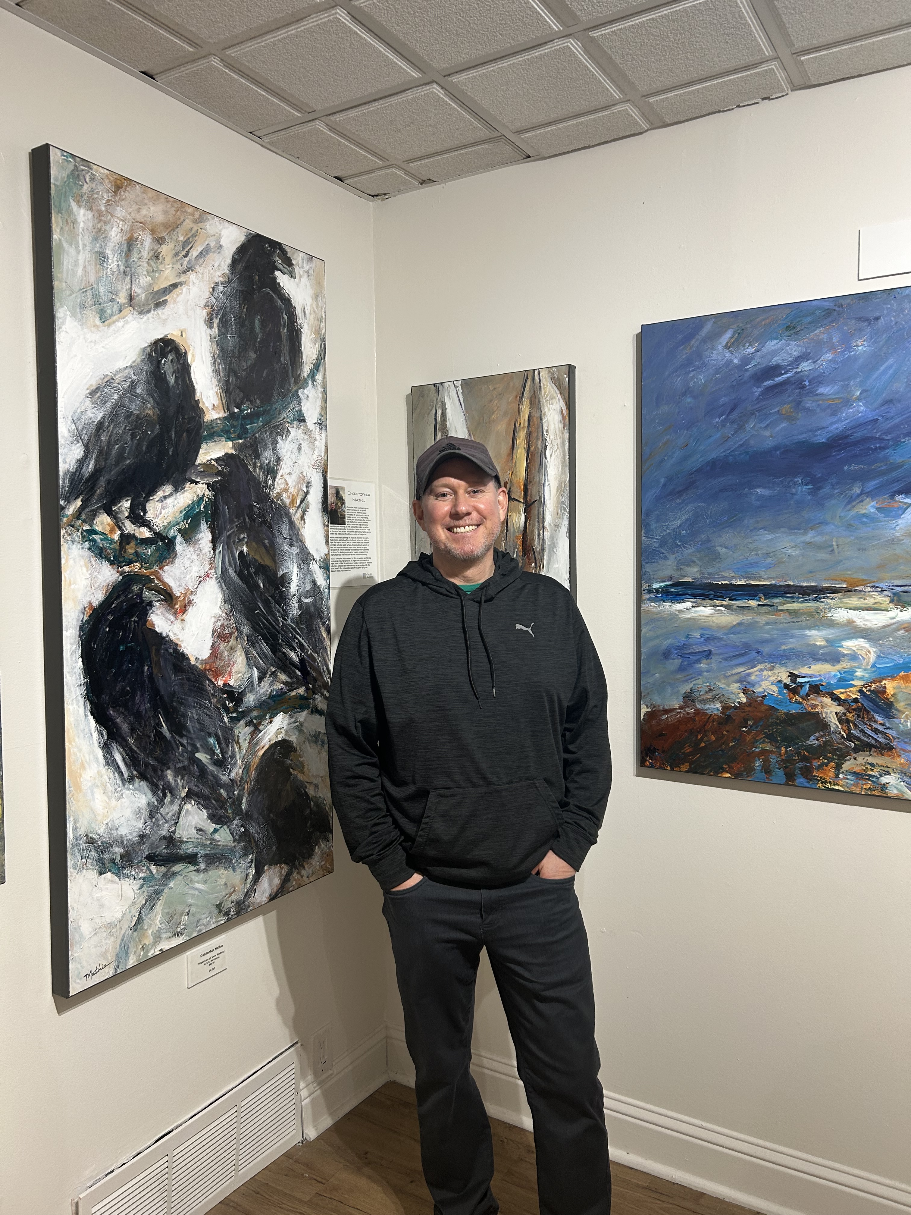 At Alki Arts, Brooke Borcherding and Christopher Mathie were on hand to share their stunning paintings, part of April’s “Slices of Life” exhibit. And, as always, a lovely crowd gathered at the gallery to enjoy both the fine art and some accompanying music.